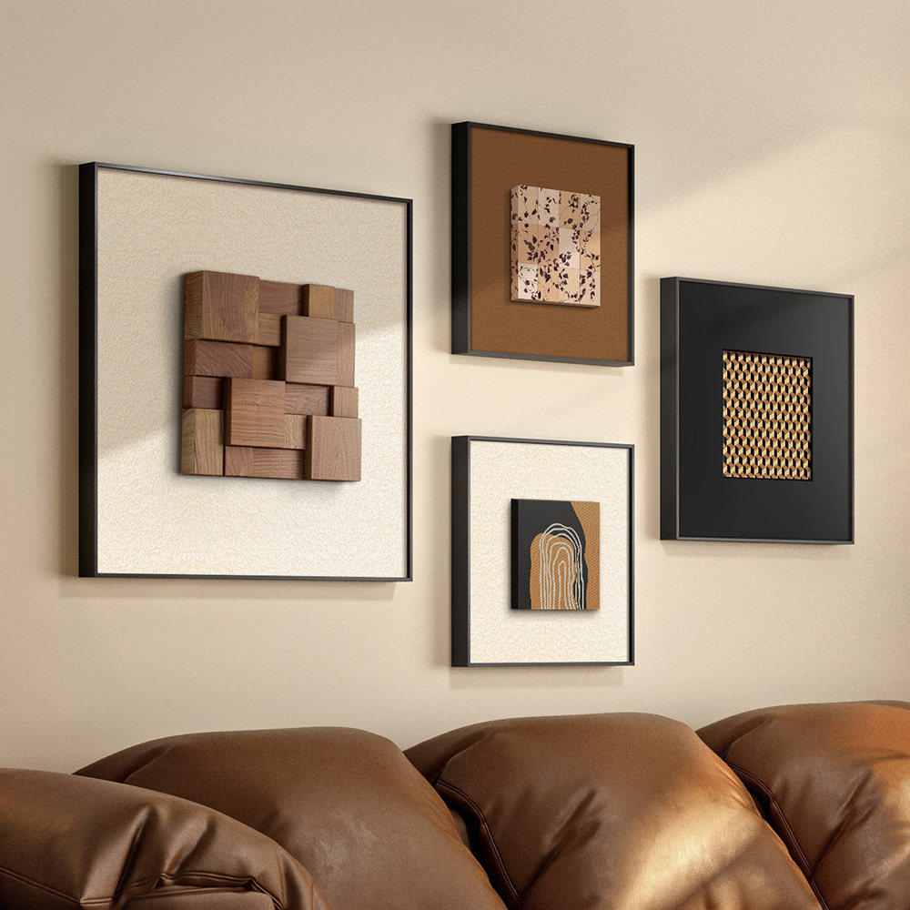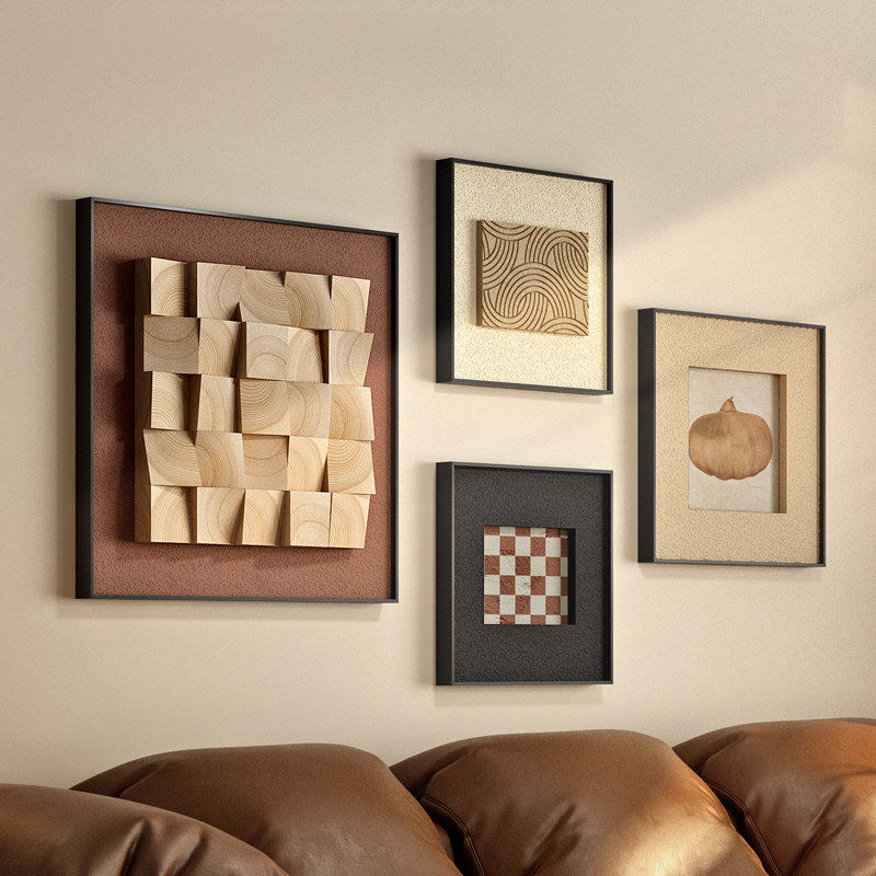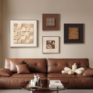 立体实木客厅装 饰画高级感砂岩画沙发背景墙壁画餐厅挂画组合现代