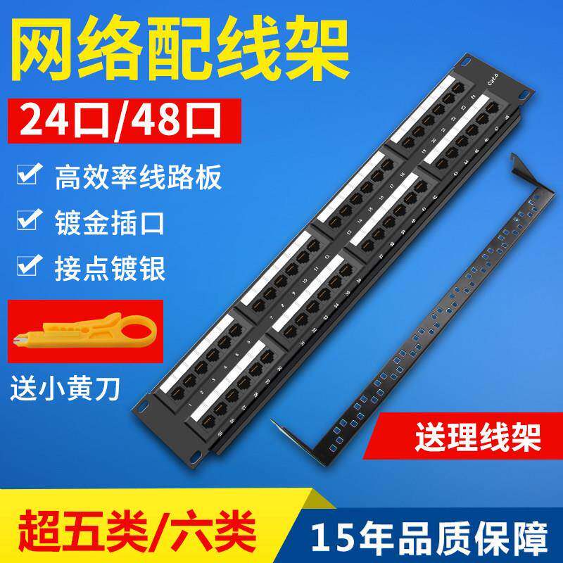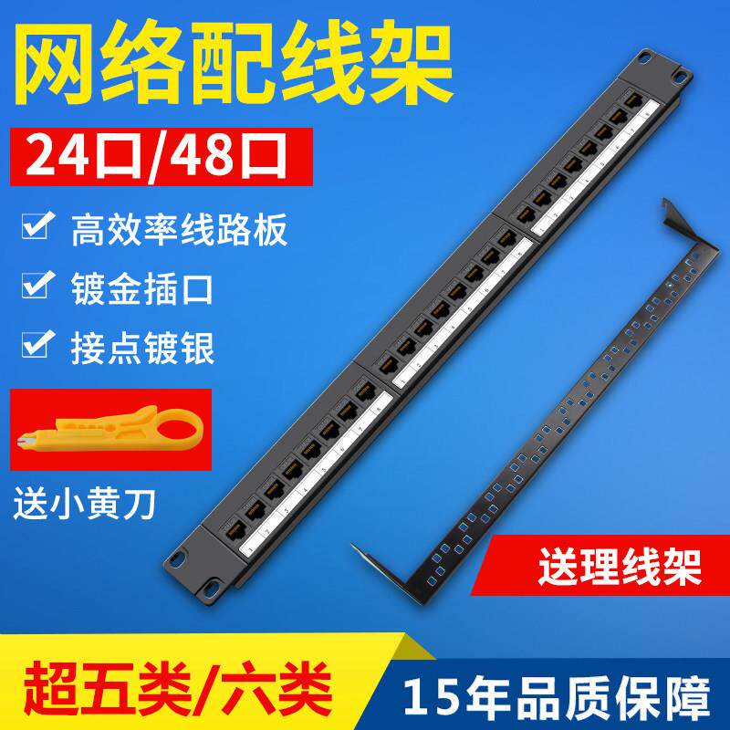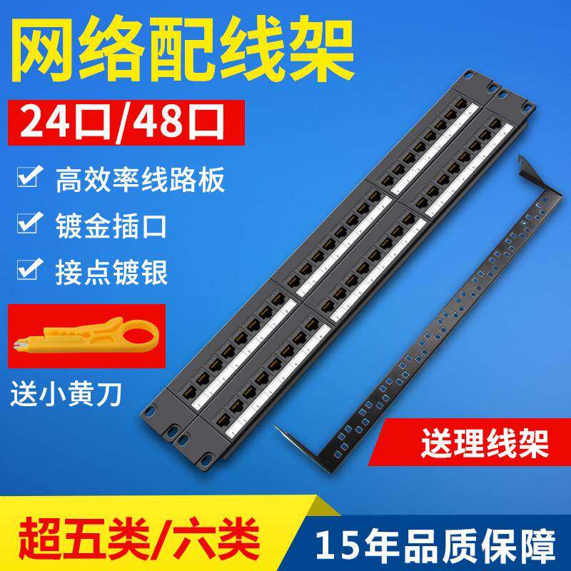 山泽超5五类六类24口48口网络配线架CAT6千兆高端工程镀金机柜架式 电话110型配线架