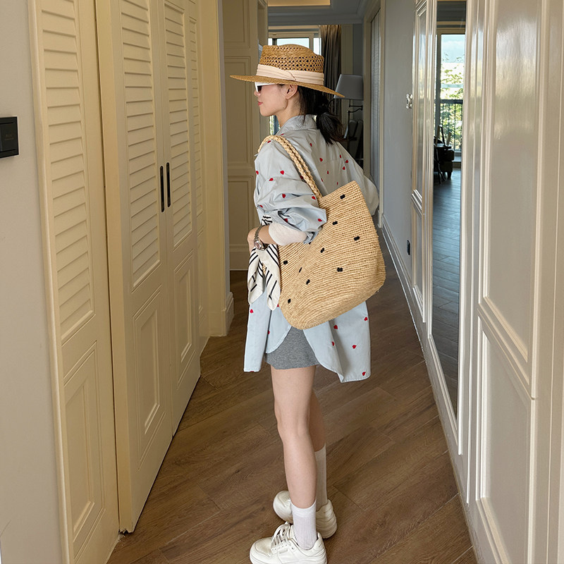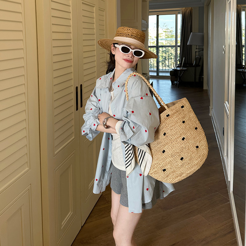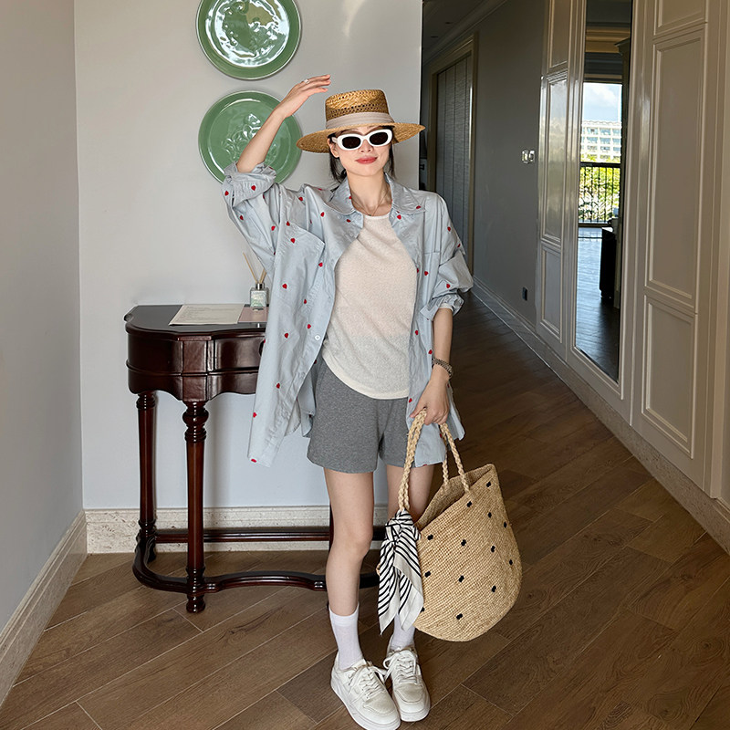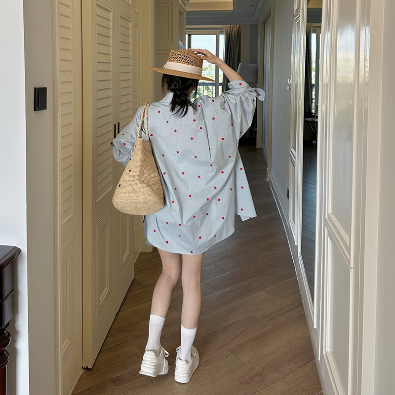 宽松廓形防晒衬衣薄外套潮 2026春夏韩版 金苏一 蓝色爱心刺绣衬衫