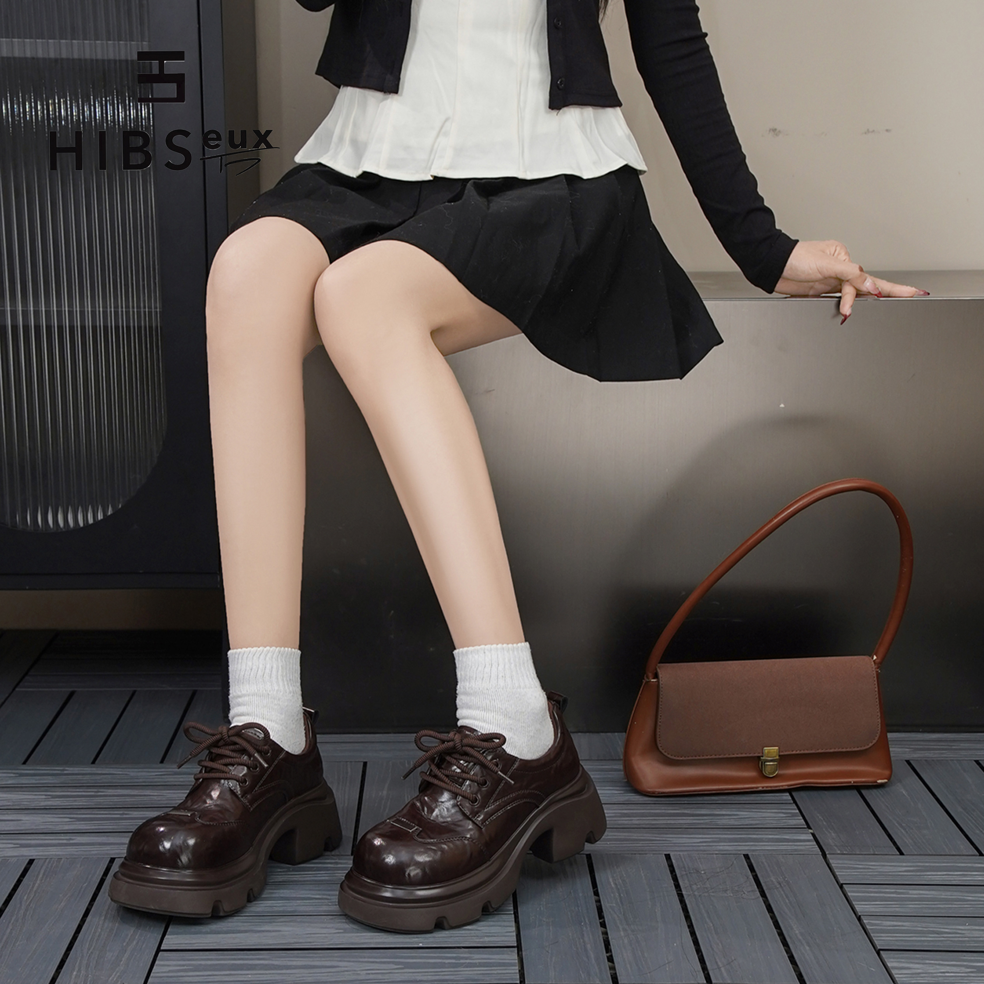 百搭圆头小皮鞋 增高6.5cm时尚 女 女系带2026春季 英伦风厚底乐福鞋
