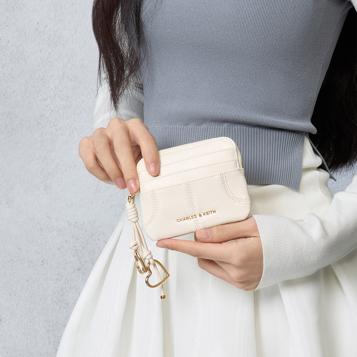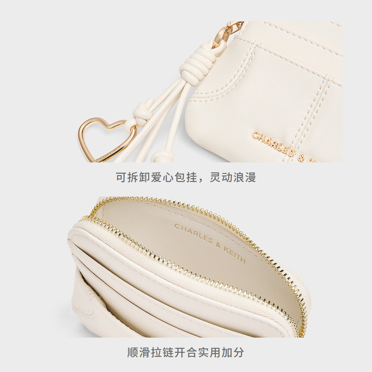 50681248爱心包挂油蜡皮卡包零钱包 CK6 CHARLES&KEITH26春季 新品