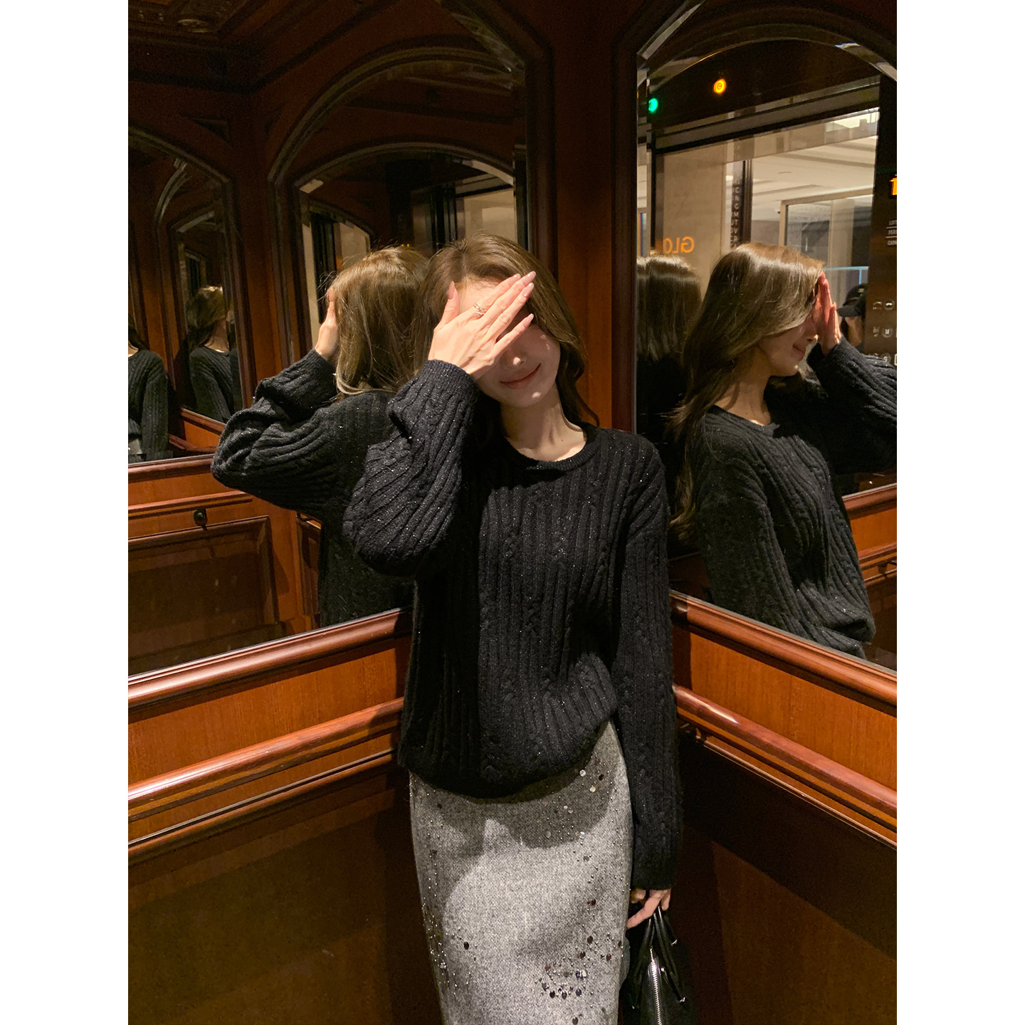 上衣 慵懒感复古麻花套头毛衣女宽松亮片针织衫 Maven Lin细闪微光
