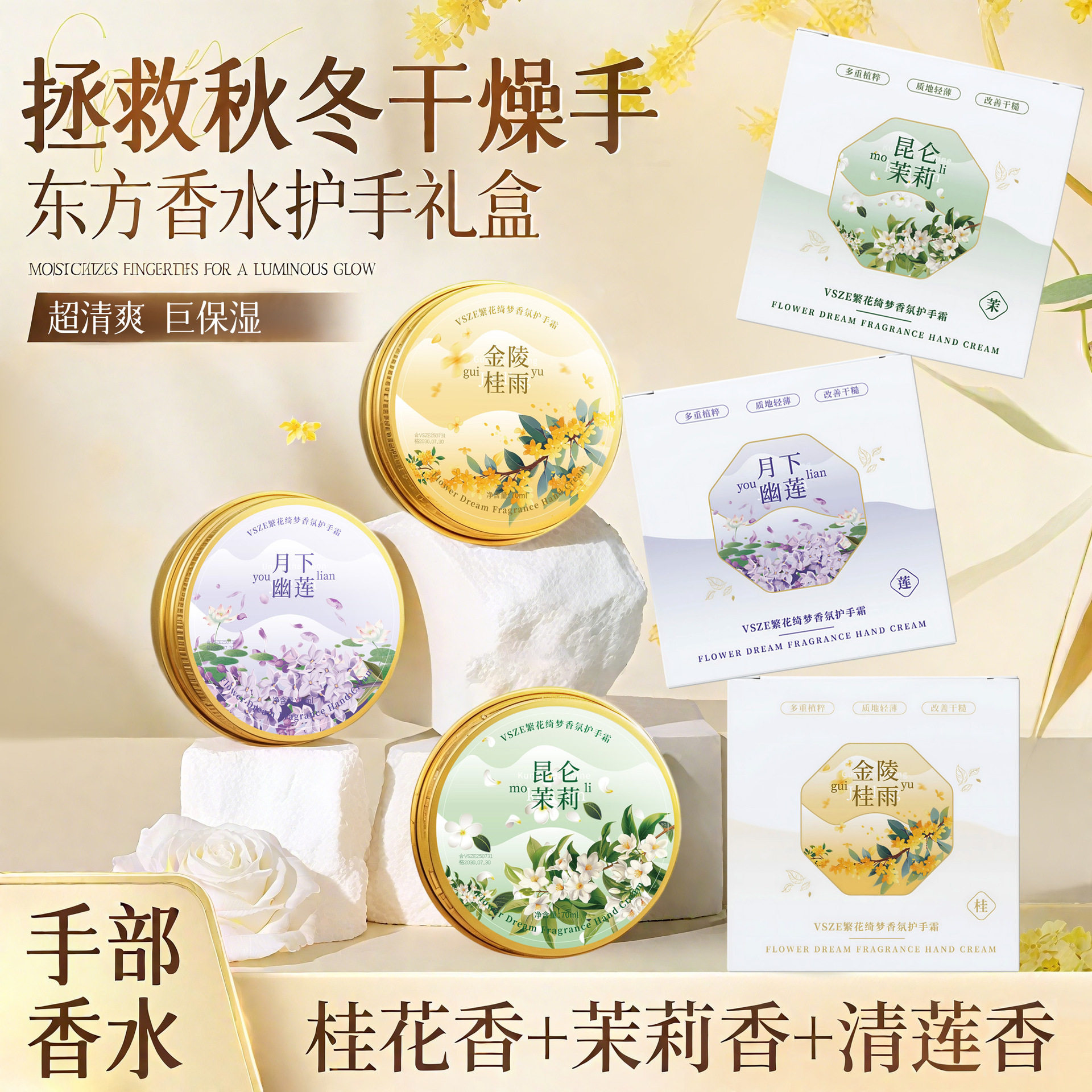 昆仑茉莉护手霜伴手繁花绮梦淡香铝盒滋润手霜雪花膏礼盒女士正品
