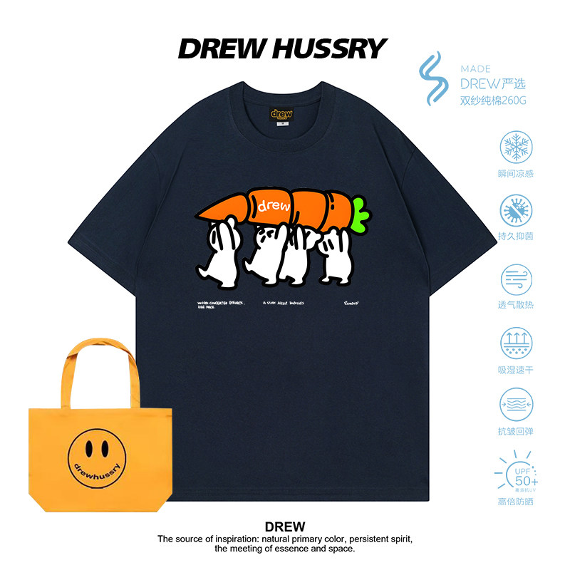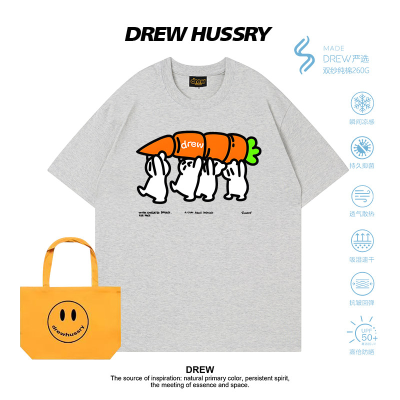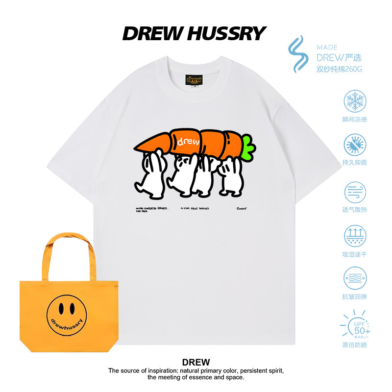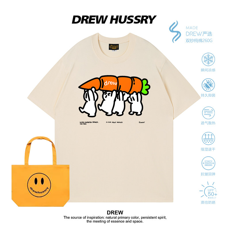 潮牌休闲宽松半袖 T恤男女宽松纯棉上衣夏季 卡通印花短袖 Drew美式