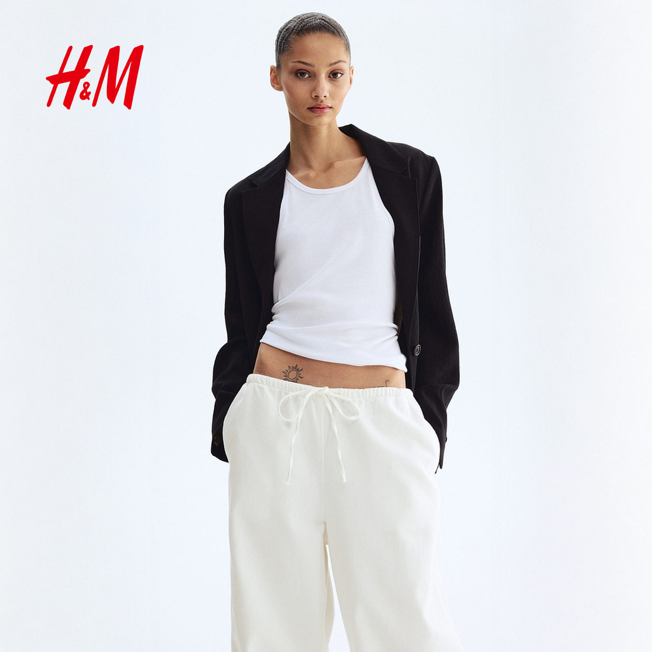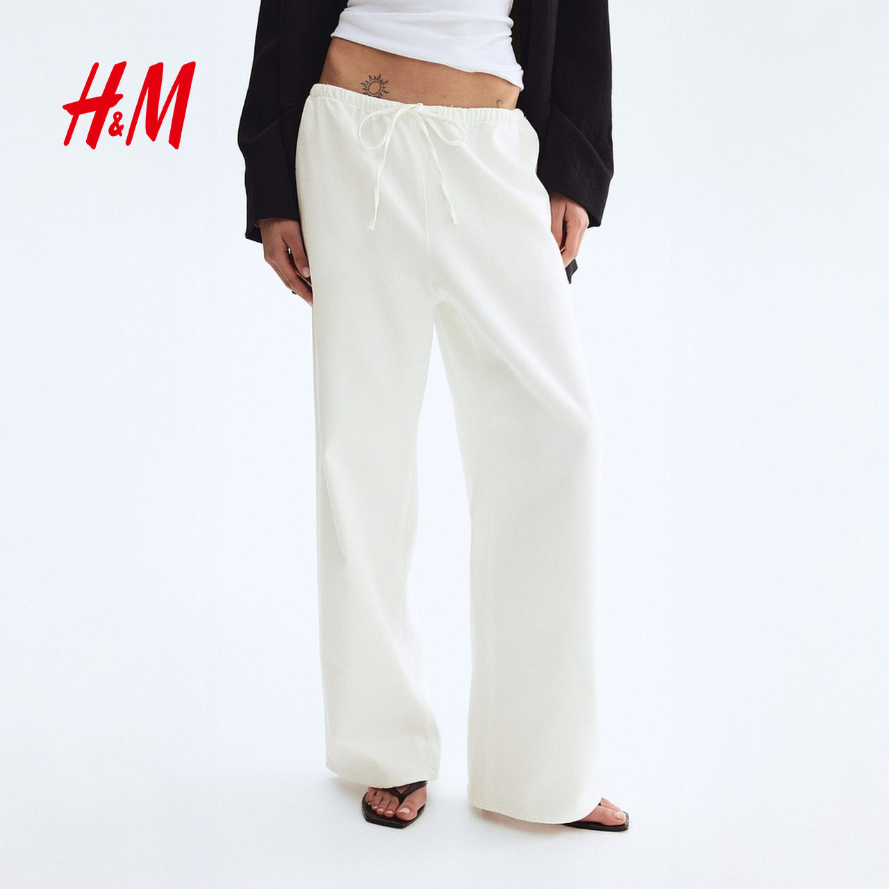 新款 2026春季 直筒版 型休闲抽绳式 1324501 HM女装 牛仔布长裤 牛仔裤