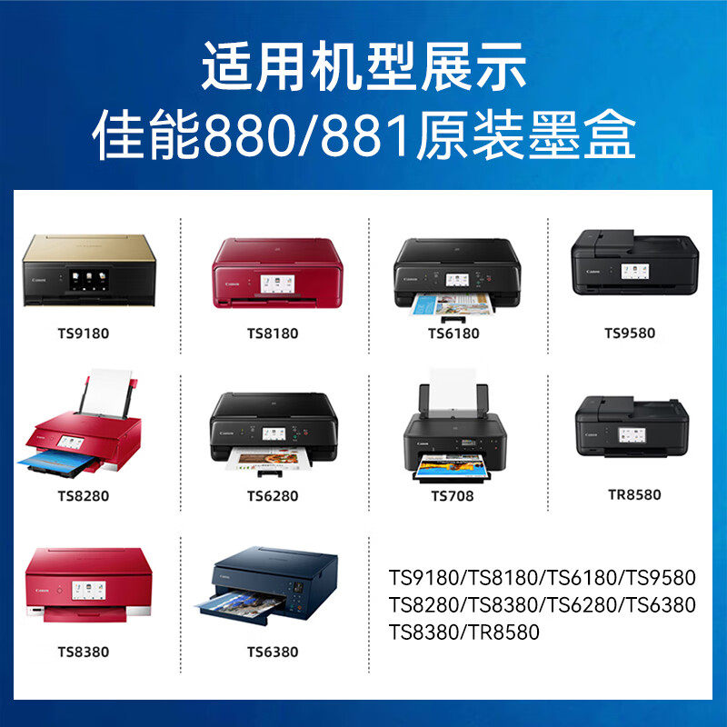 8180 佳能打印机PGI TS8380 原装 8280 CLI 880 PGBK 881大容量XL墨盒黑色彩色喷墨适用于canon 708C 9580
