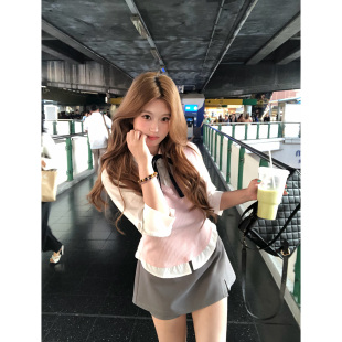 上衣半裙套装 你 韩系微胖mm春夏假两件学院感短袖 伯克利学院 鱼