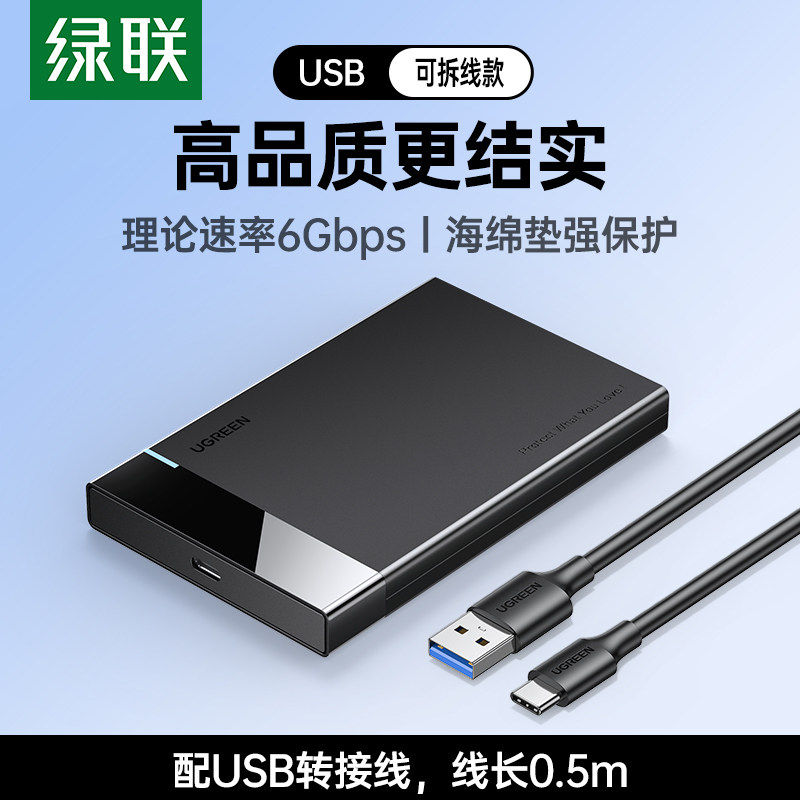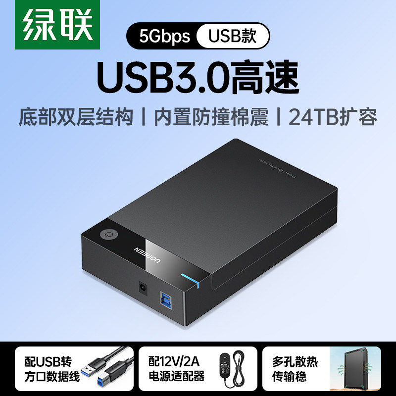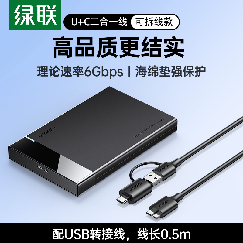 绿联移动硬盘盒子2.5 通用sata转usb外接硬盘读取器 3.5英寸外接typec机械固态台式