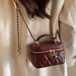 新年礼物 南风Chio2nd盒子包红色手提小包包女菱格链条单肩斜挎包