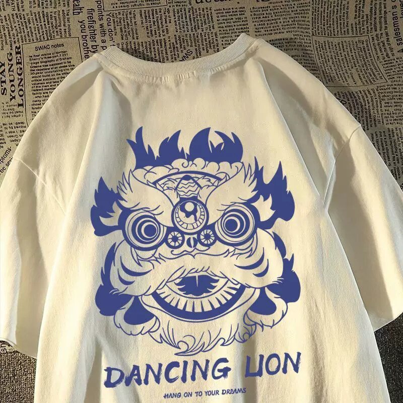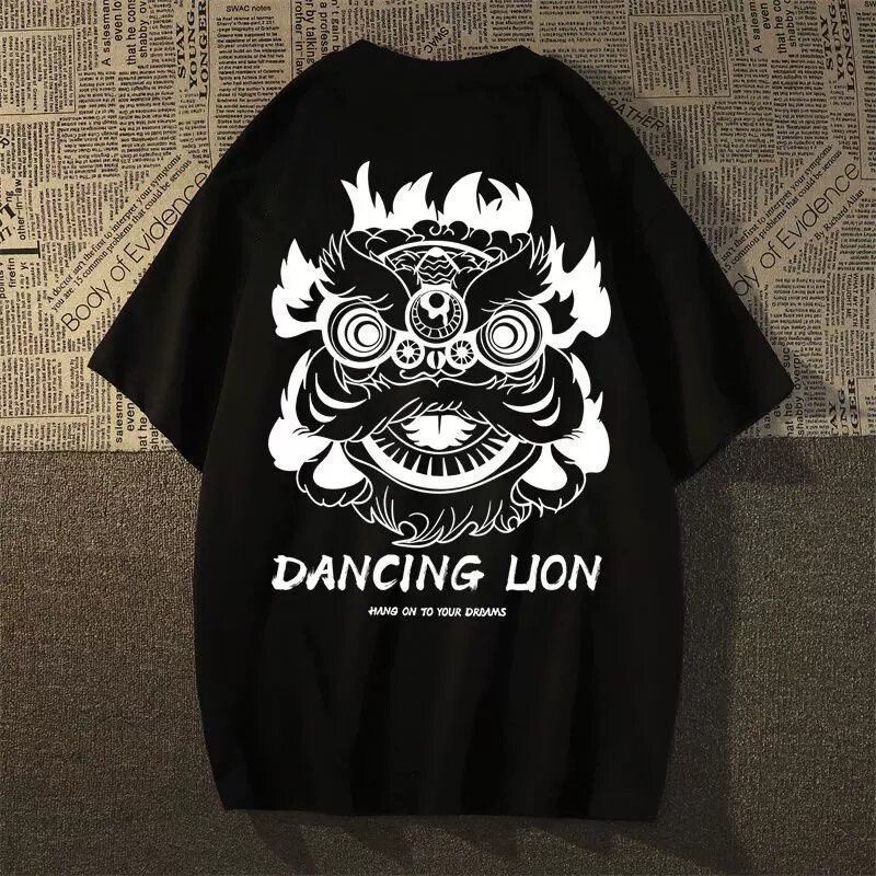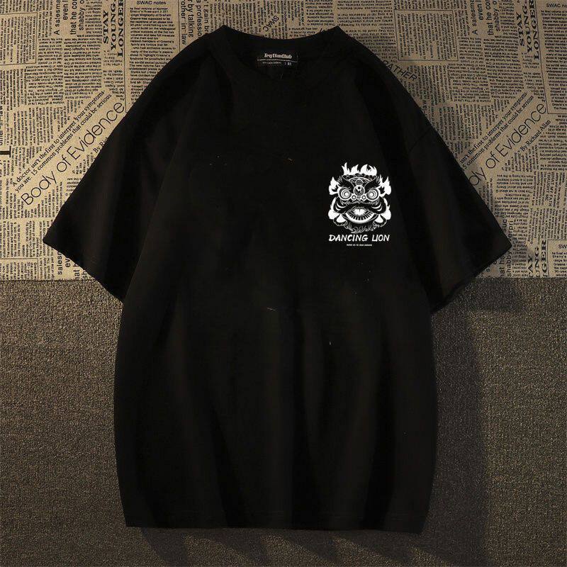 宽松百搭圆领青少年上衣服 夏季 重磅纯棉潮牌印花白色短袖 T恤男士