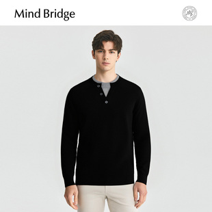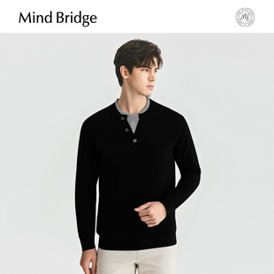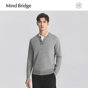 休闲针织男士 Mind 2025年秋美式 绵羊毛 纯色假两件毛衣 Bridge