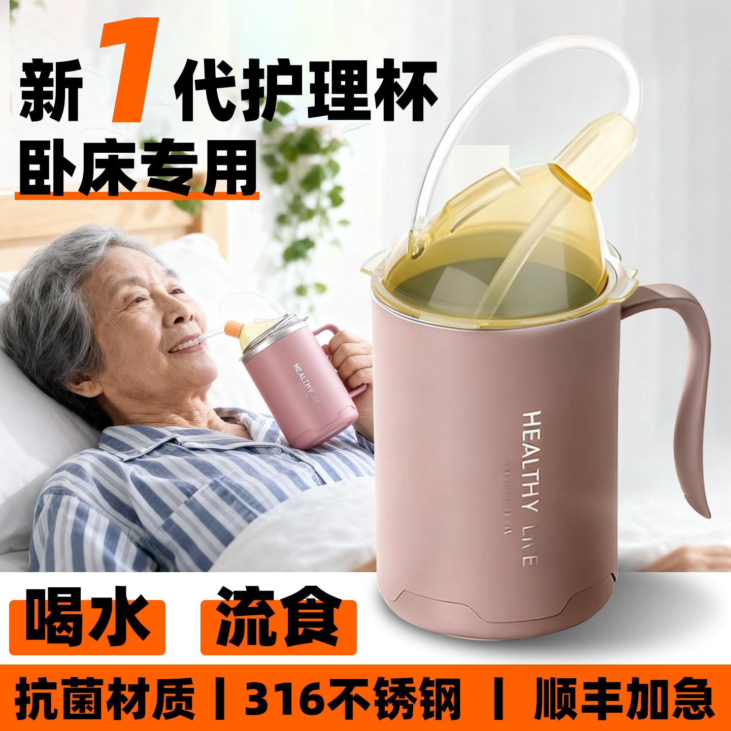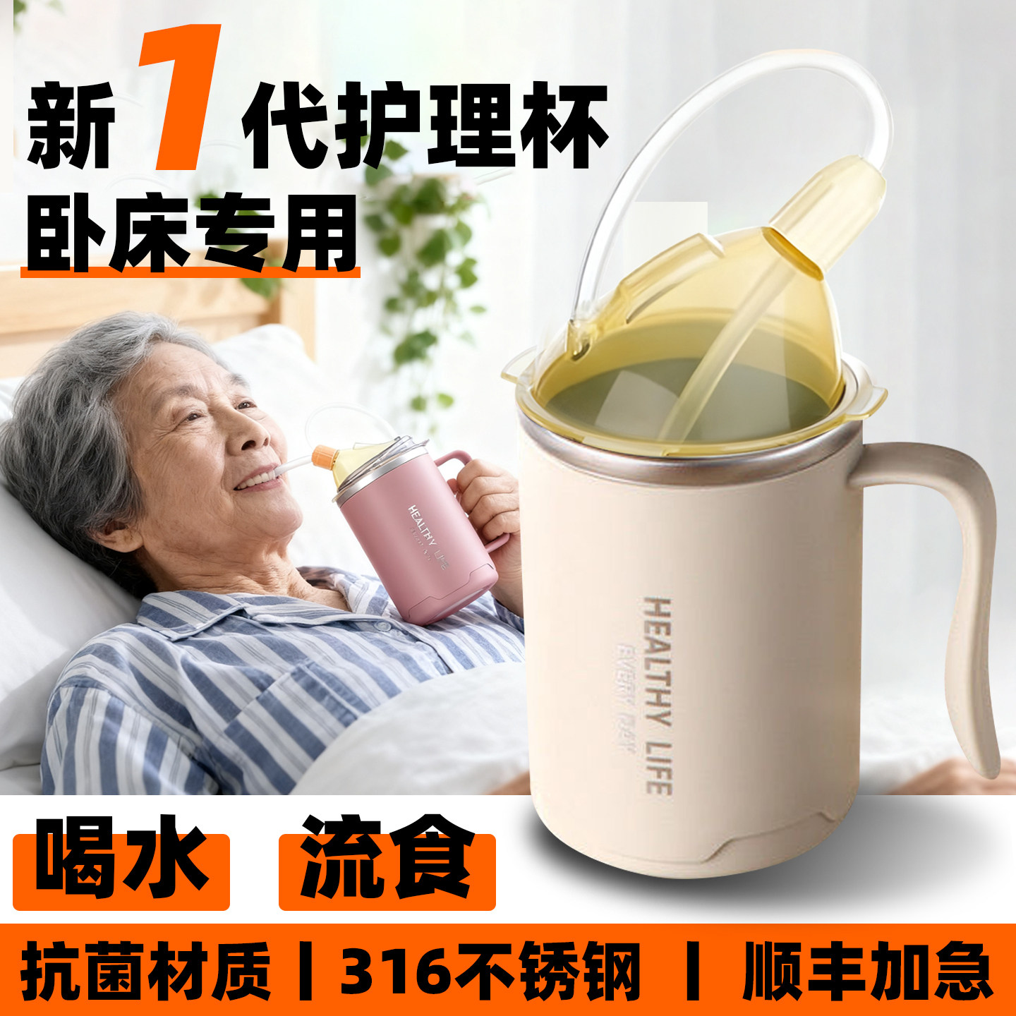 索仁卧床病人流食杯防呛防摔吸管杯孕妇产后老年人喝水喂饭护理杯
