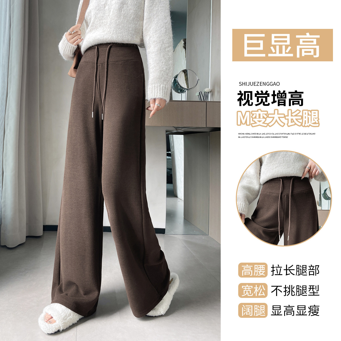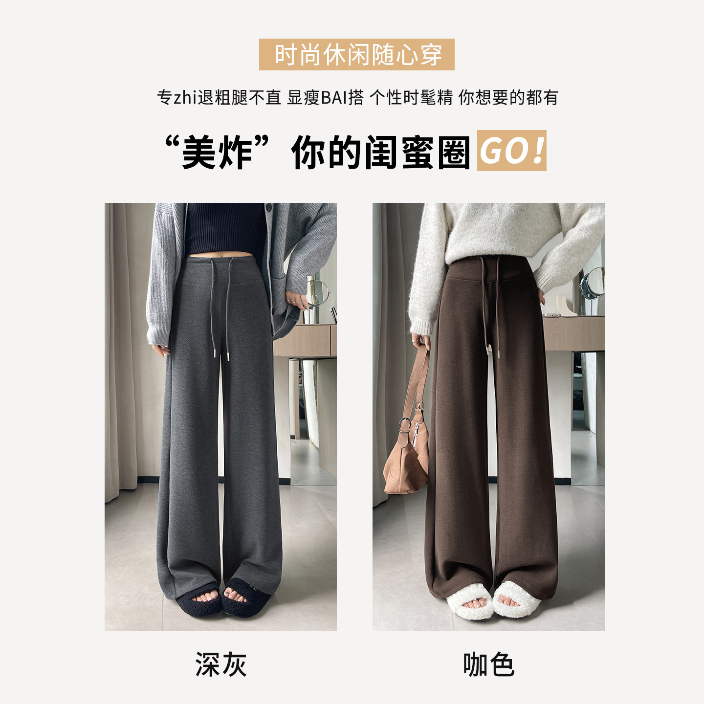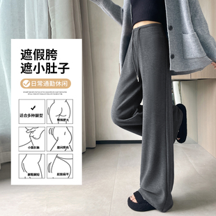 女秋冬季 高腰休闲糯米裤 加绒窄版 2025新款 子 羊毛运动裤 灰色阔腿裤