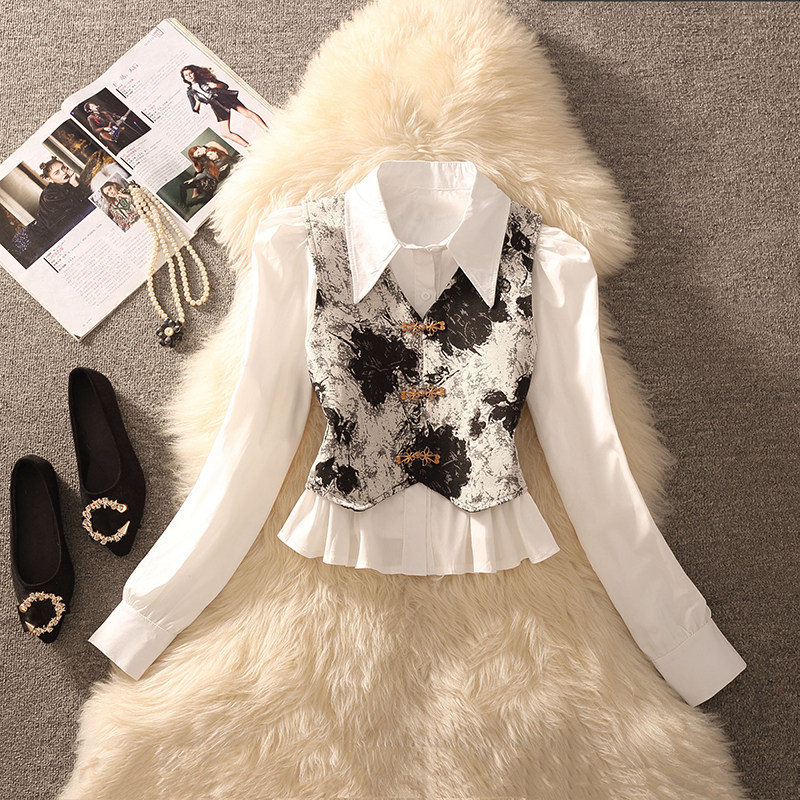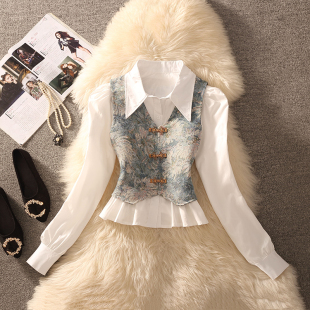气质复古两件套装 2026秋冬季 国风盘扣拼接马甲胖MM大码 新中式 新款