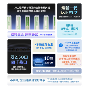 BE7200路由器 轻舟WiFi7 双2.5G口千兆家用高速tplink无线mesh全屋覆盖大户型穿墙7DR7270 LINK 普联TP