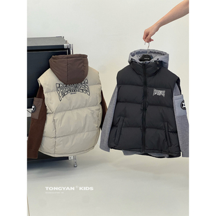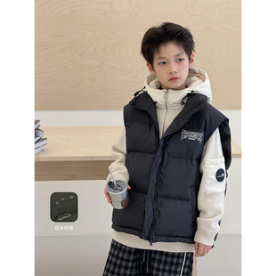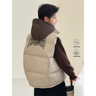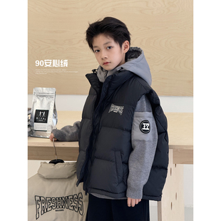 中大童外套保暖白鸭绒儿童马夹 男童羽绒服马甲2025冬装 安心绒