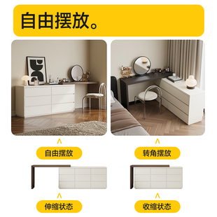 奶油风梳妆台现代简约收纳柜床头柜化妆台一体书桌伸缩化妆桌2023
