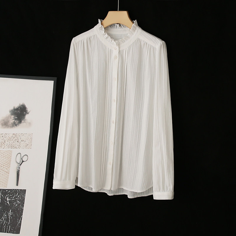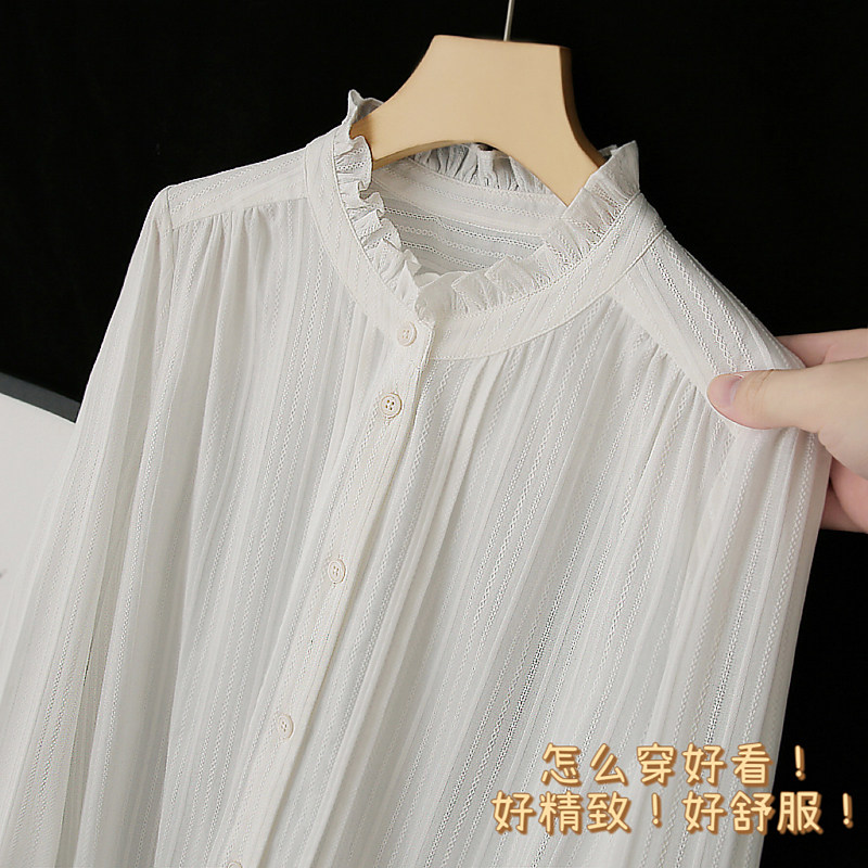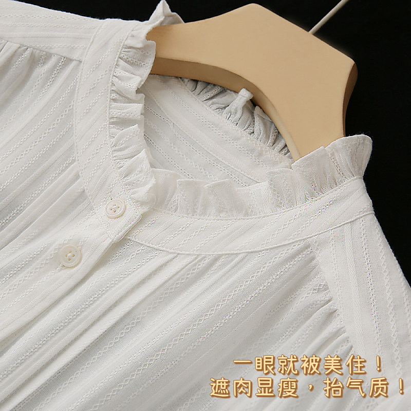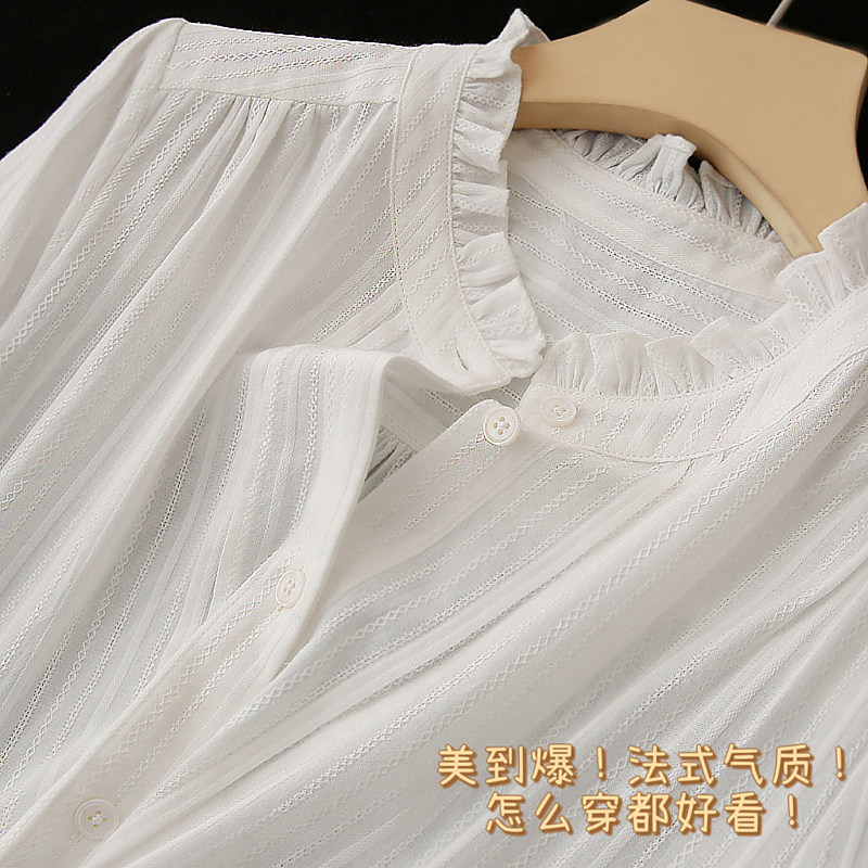 花边立领镂空提花女木耳边全棉衬衫 法式 上衣 可单穿可叠搭 柜款