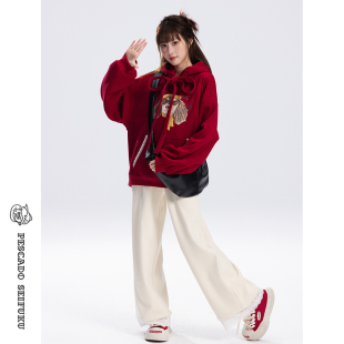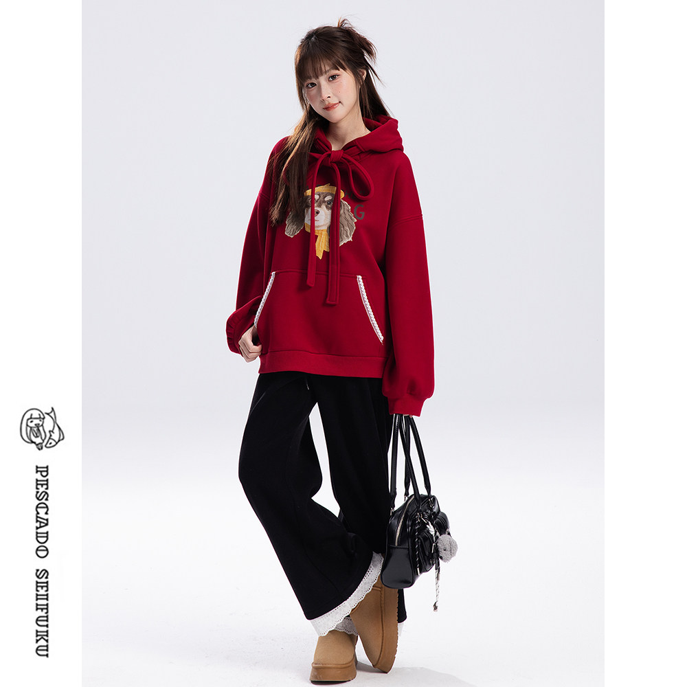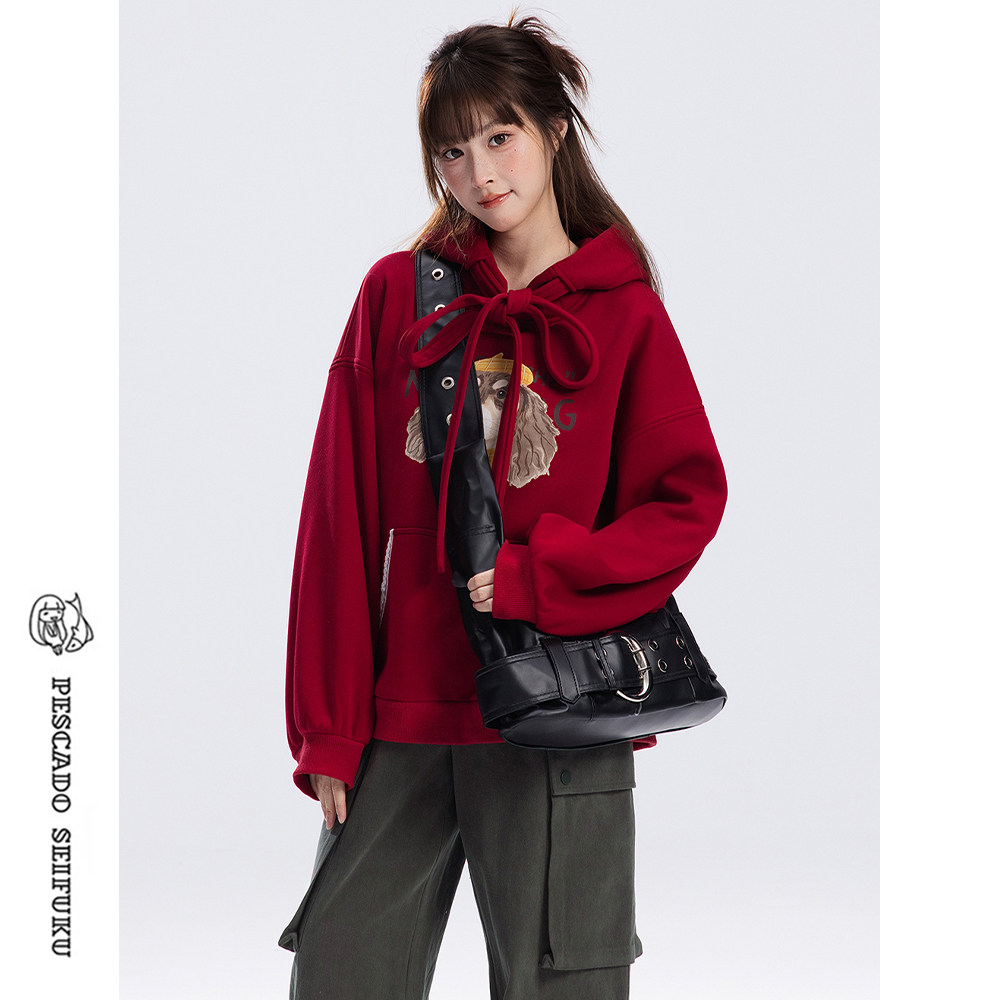 小个子连帽外套 新年加绒红色卫衣女2025新款 甜鱼少盐 瑰野卫衣