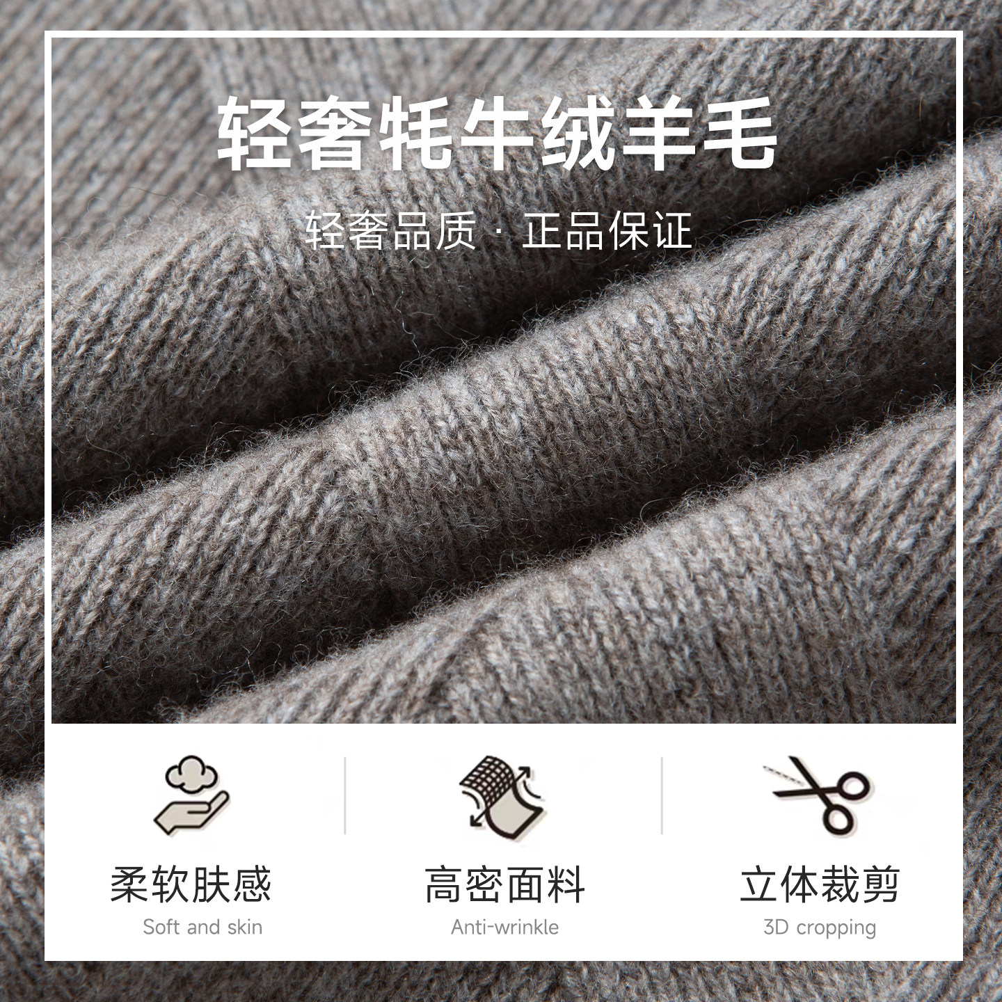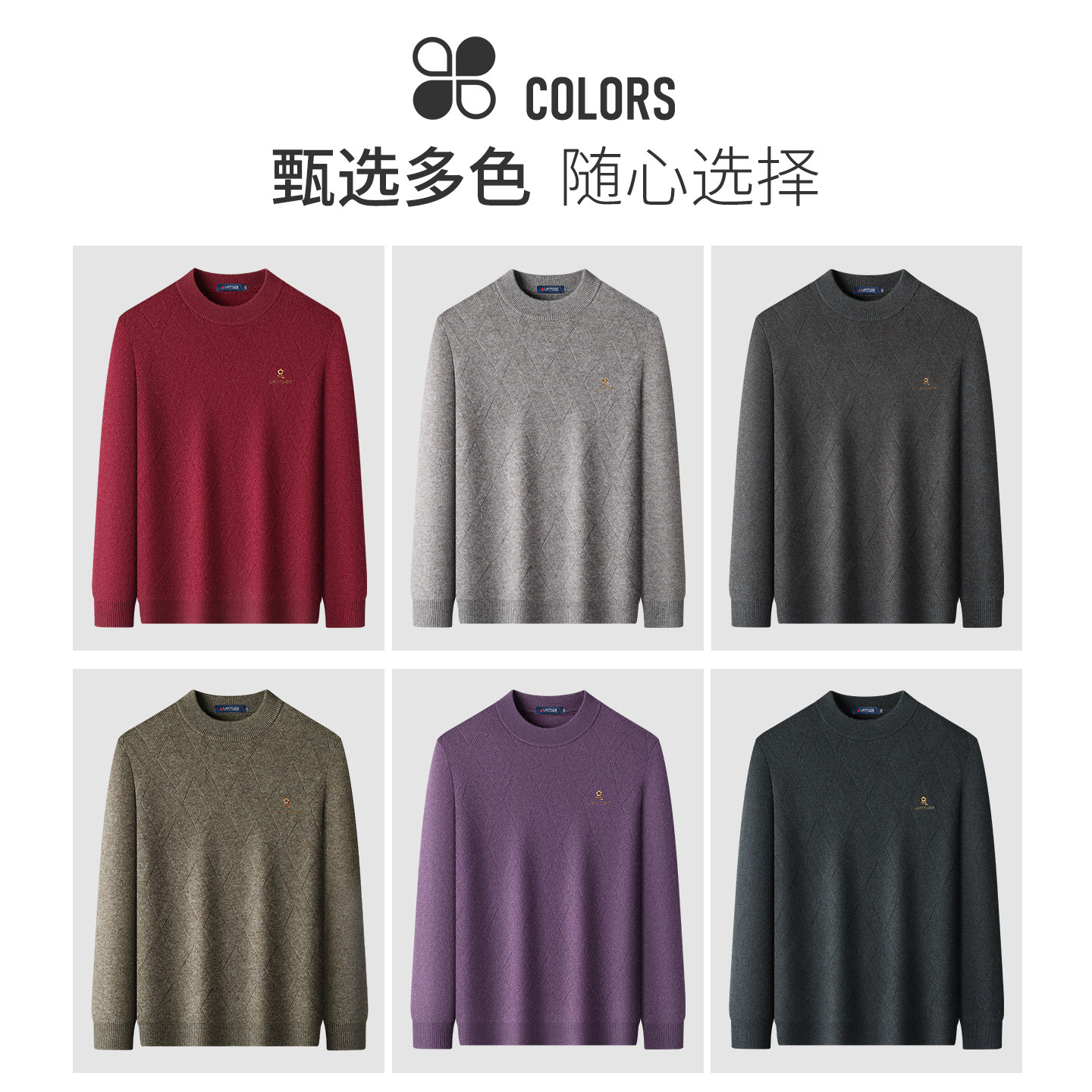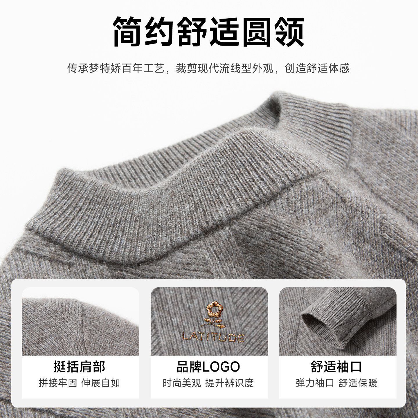 梦特娇男士 牦牛绒 圆领毛衣绞花加厚款 秋冬季 针织打底衫 绵羊毛