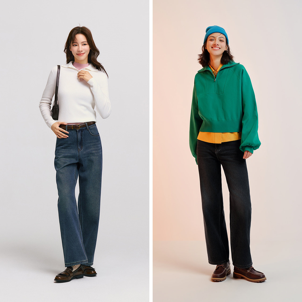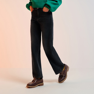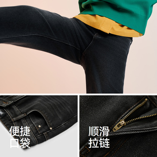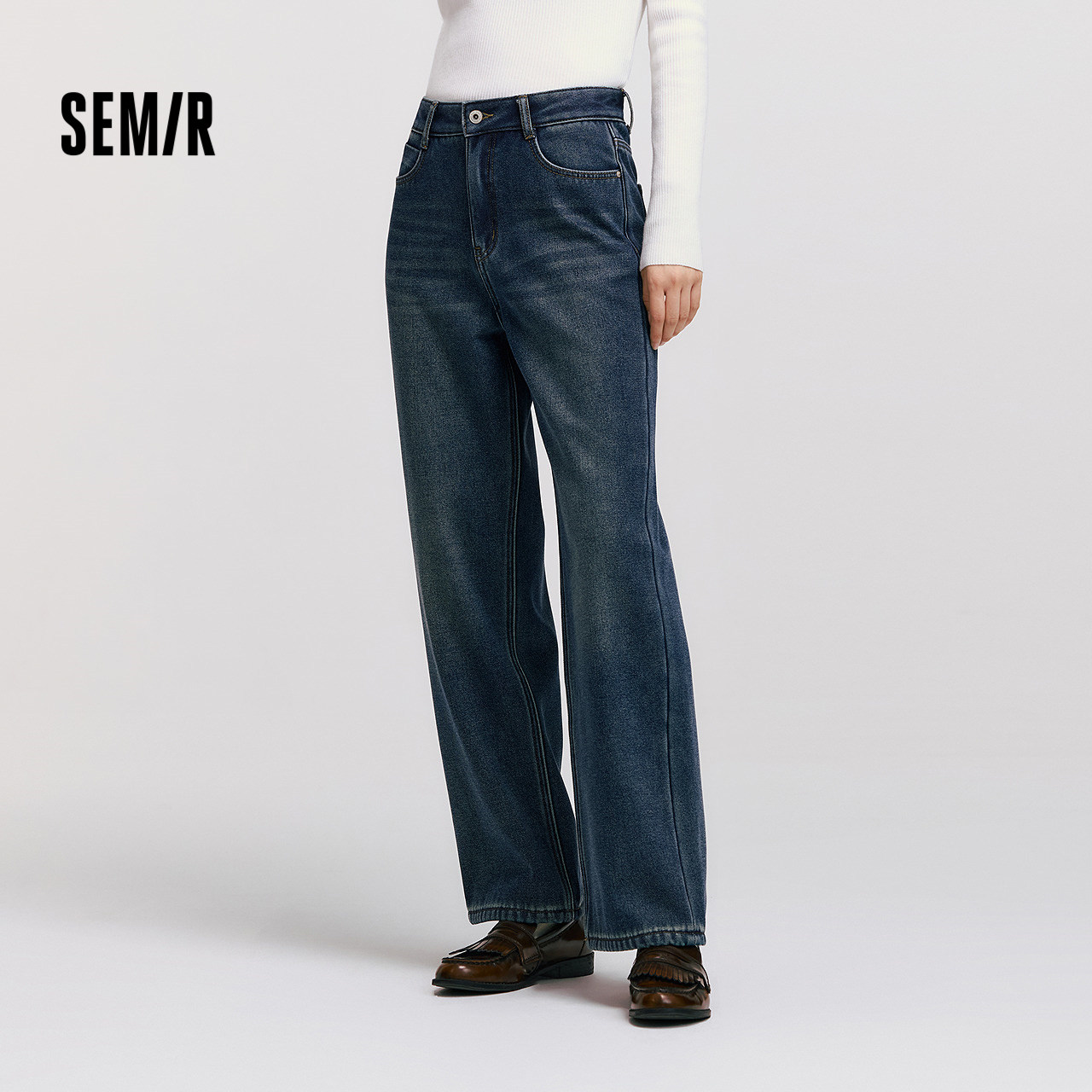 复古简约ins潮百搭阔腿裤 森柔 加绒宽松长裤 女2025冬季 森马牛仔裤