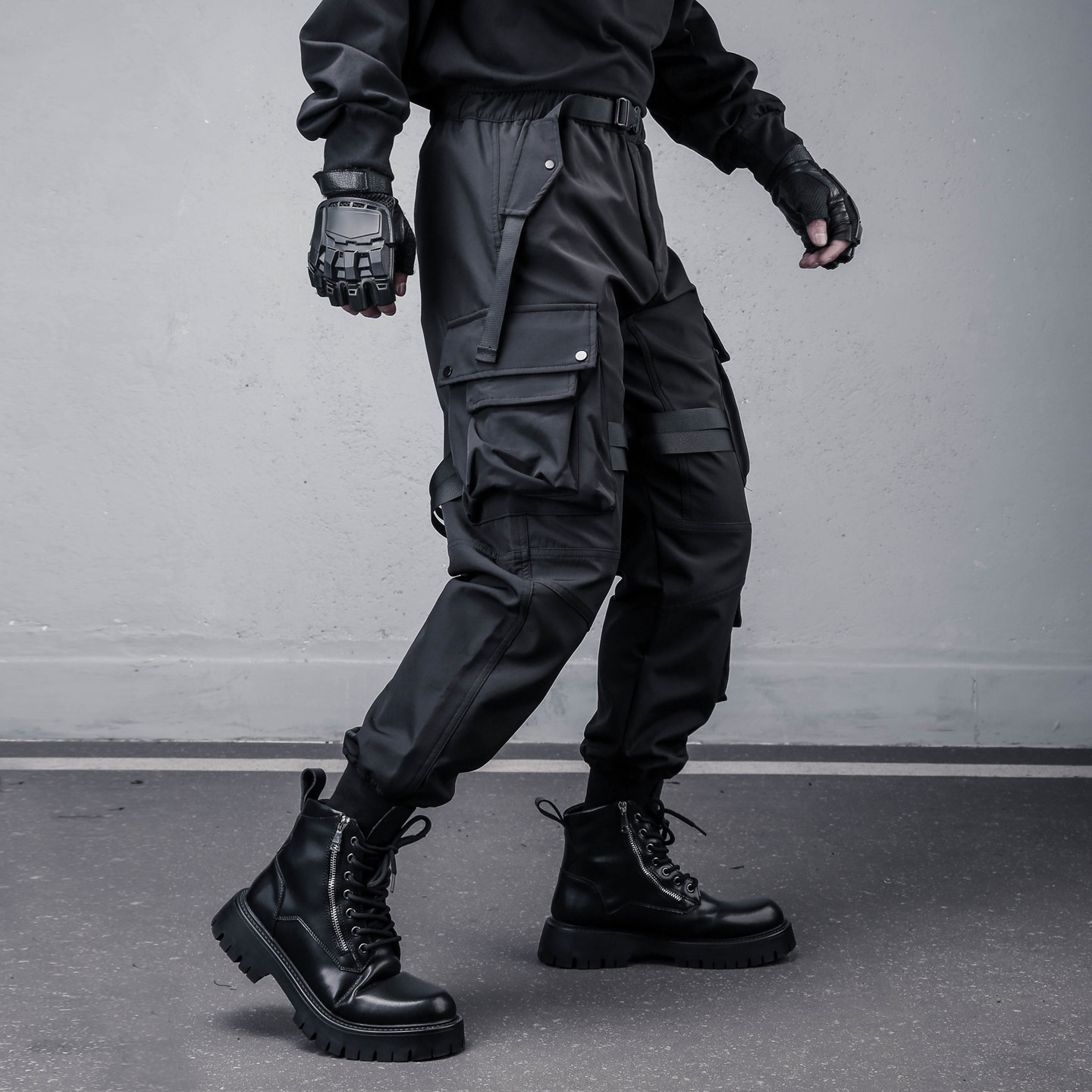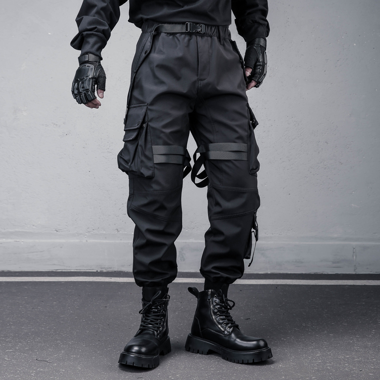裤 潮牌长裤 男士 宽松休闲战术束脚裤 机能伞兵裤 小众设计多口袋工装