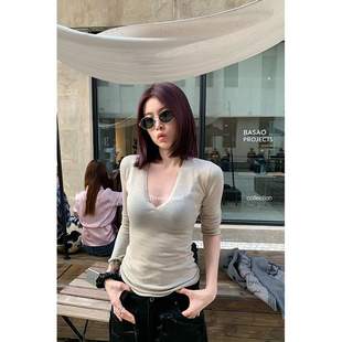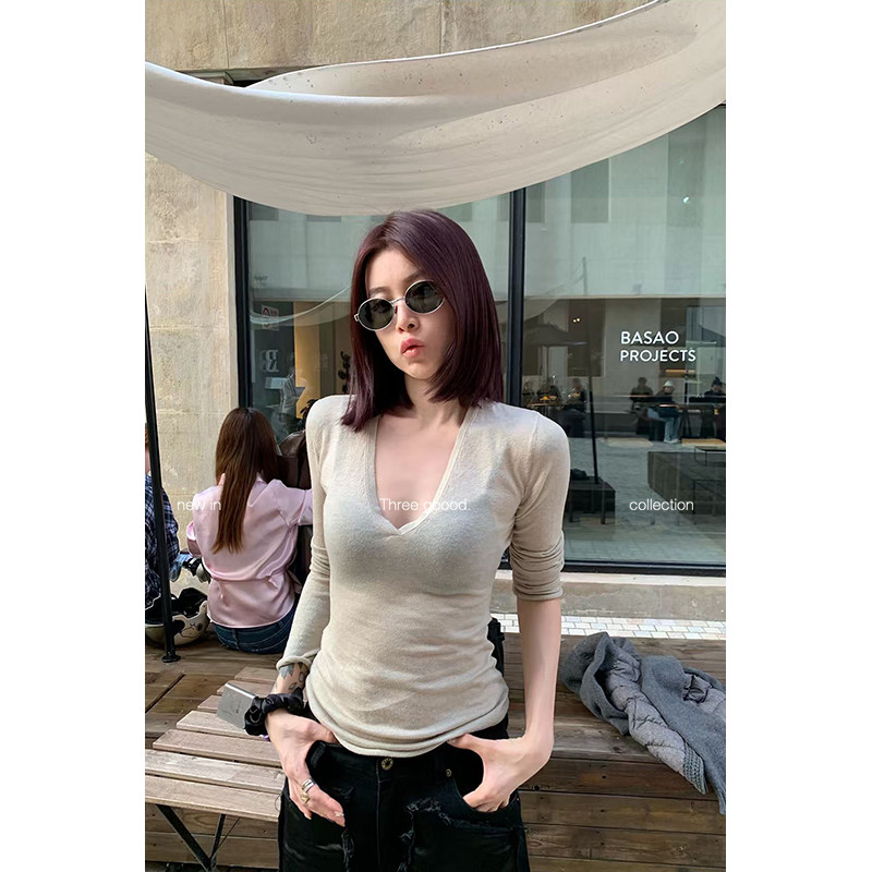 桑蚕丝羊毛V领针织打底上衣 绵云慕斯 THREE GOOOD殷三吉