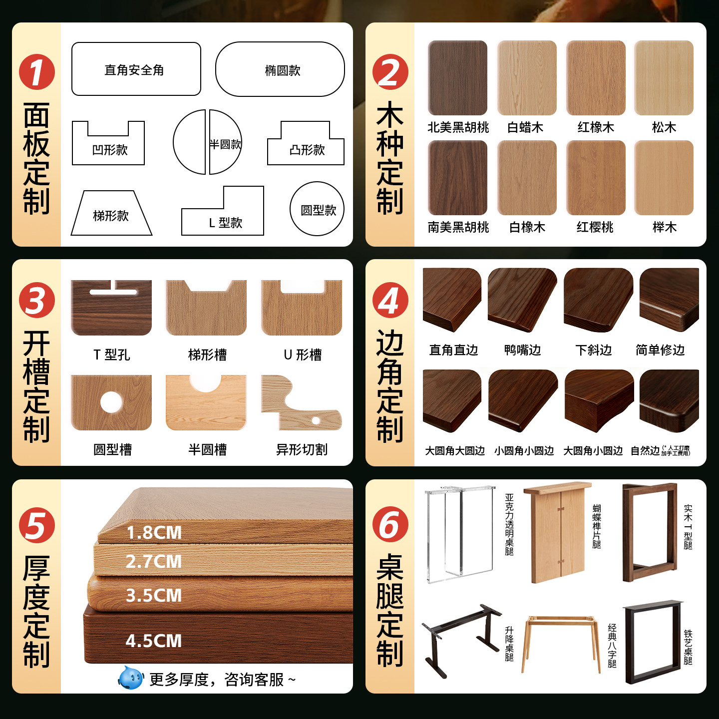 实木桌板橡木板北美黑胡桃木料胡桃木板榉木樱桃木桌面柚木桌定制