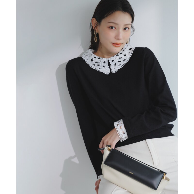 ANY 女ONWARD SIS温柔气质甜美适宜可水洗蕾丝领针织衫