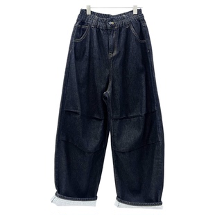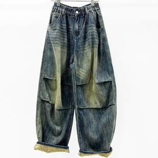 显瘦个性 2025冬季 松垮萝卜裤 CHYY松紧腰宽松牛仔女老爹裤 休闲 新款