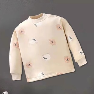 儿童保暖内衣夹棉加厚单件秋衣宝宝男童夹棉特厚内搭打底棉袄上衣