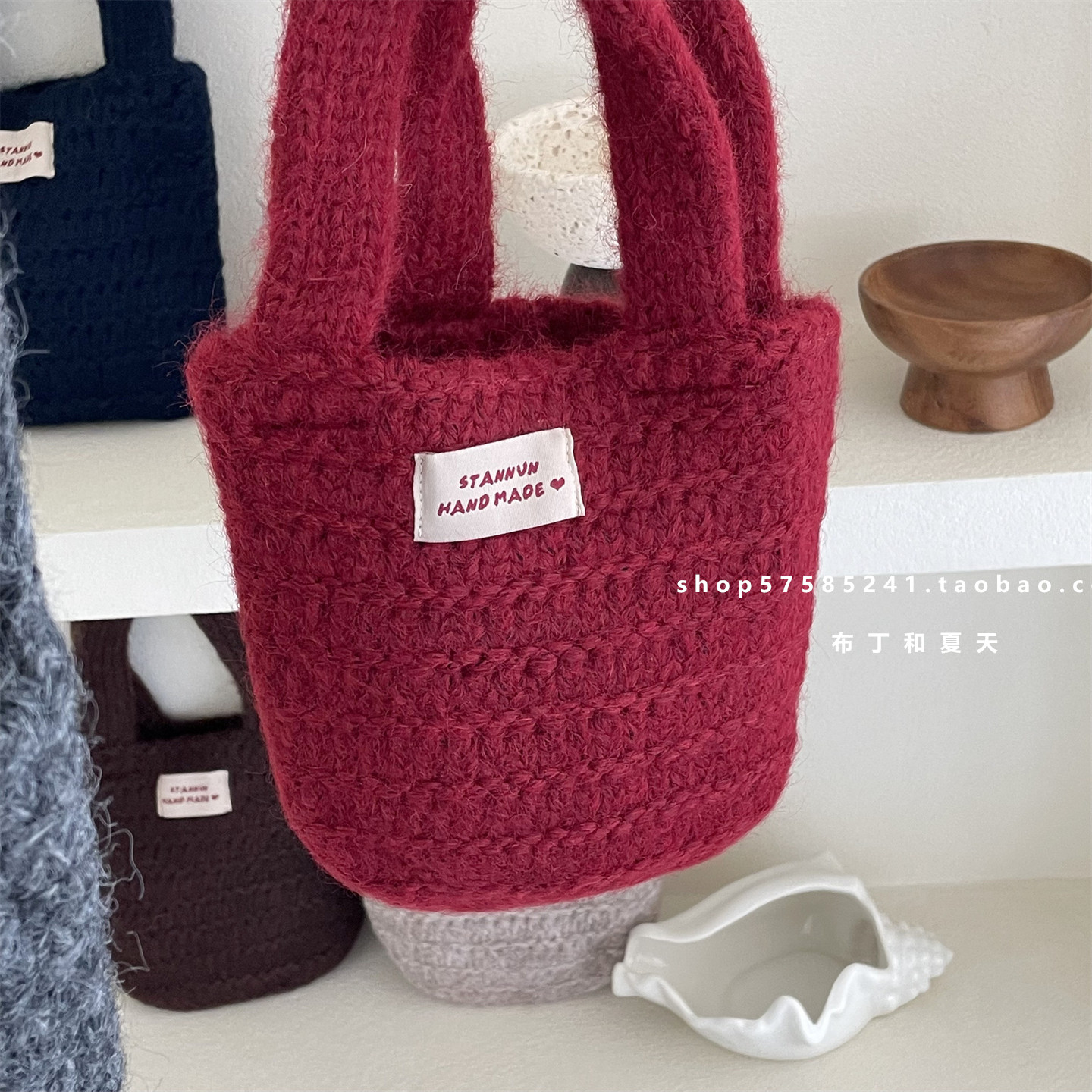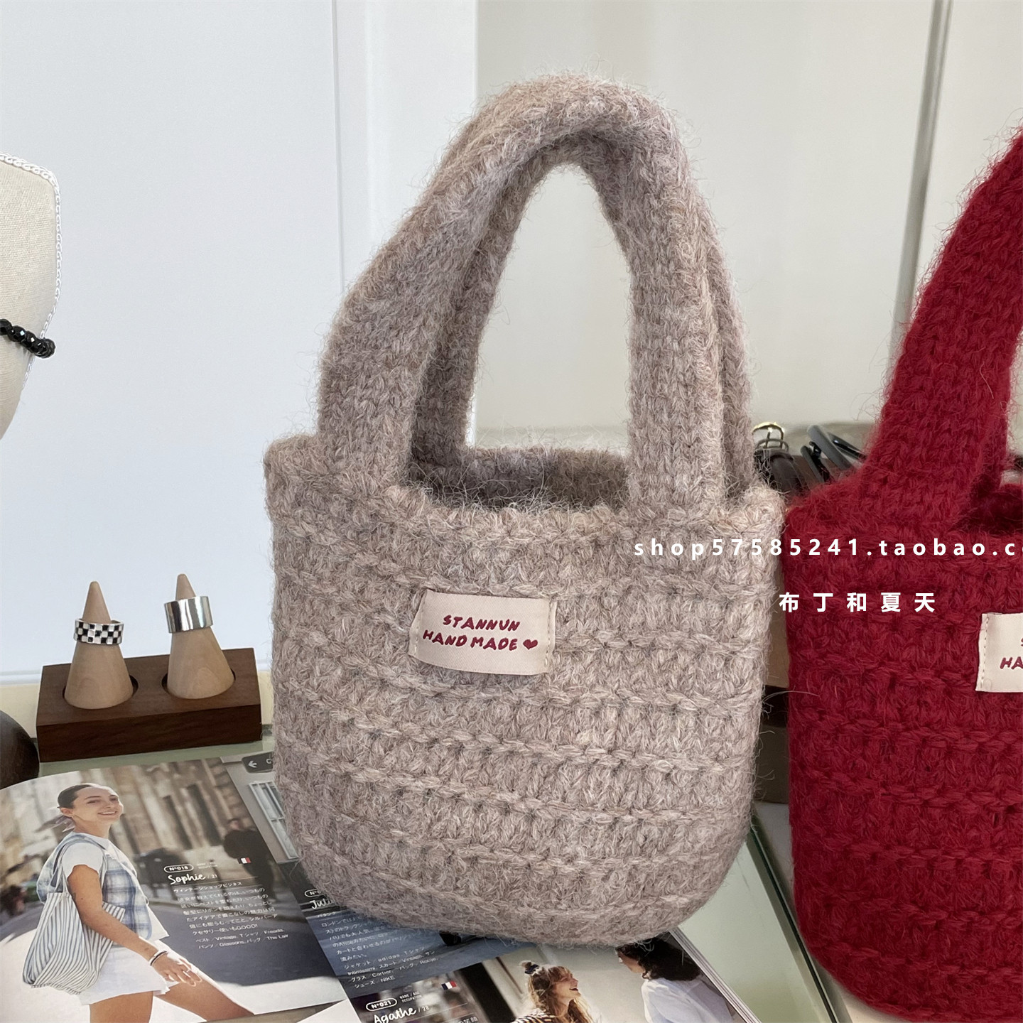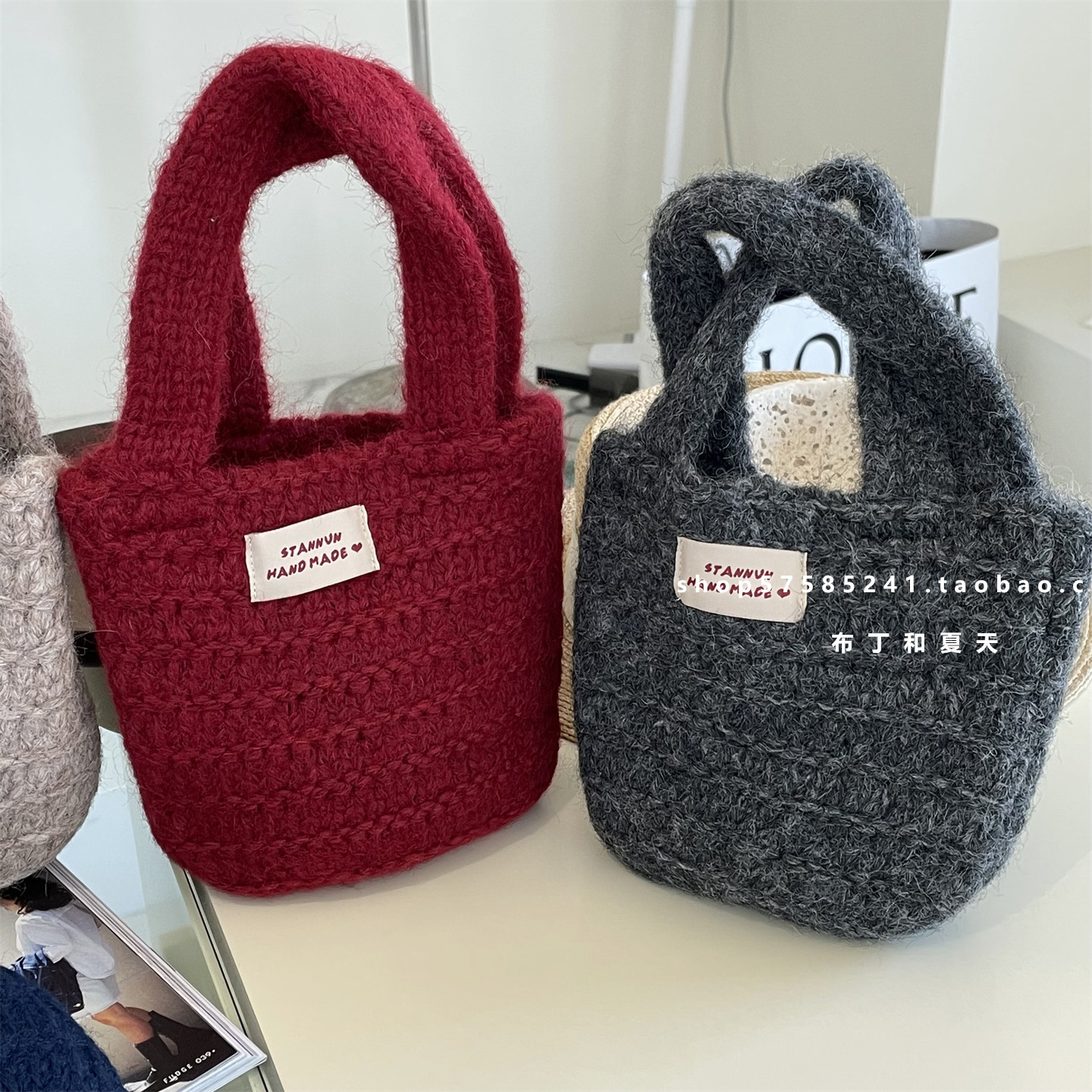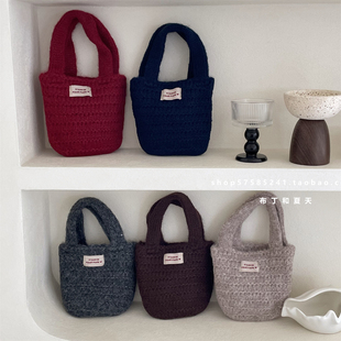 出口韩单mini红色小包毛线针织手拎包手提包女士春秋冬季 包包新品