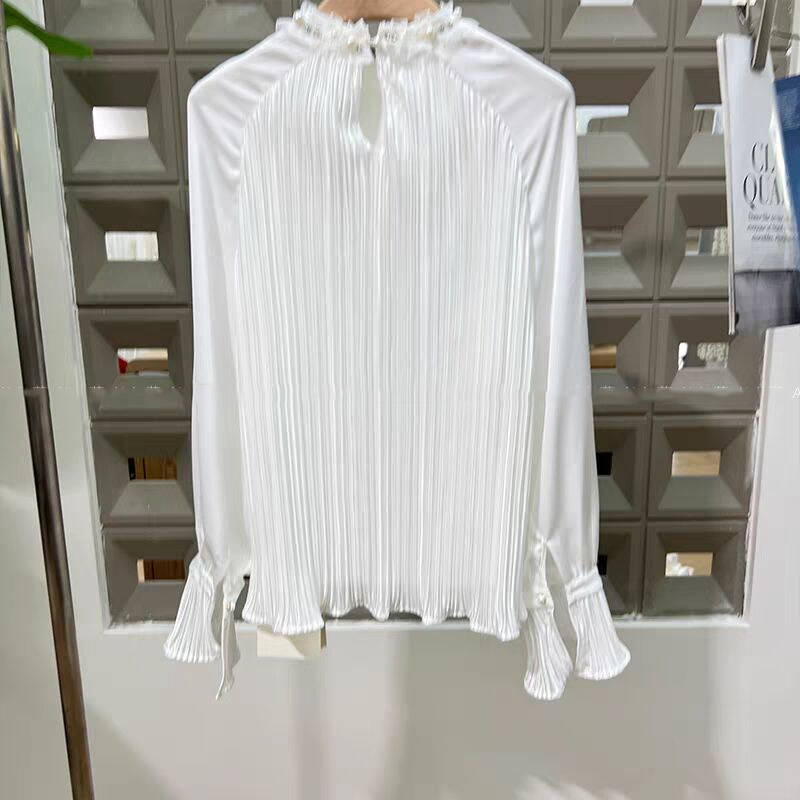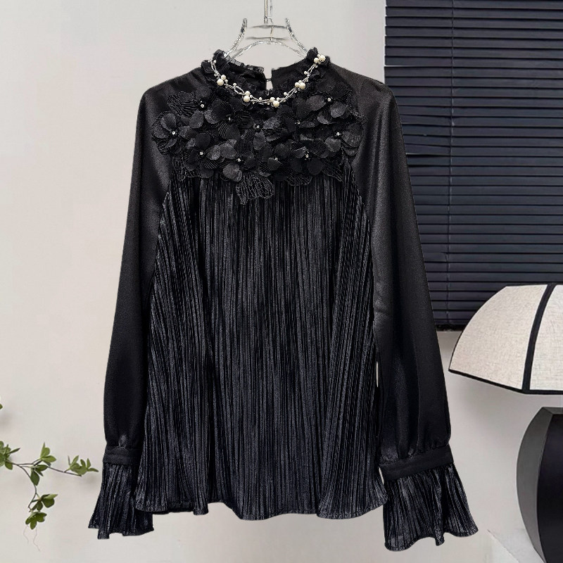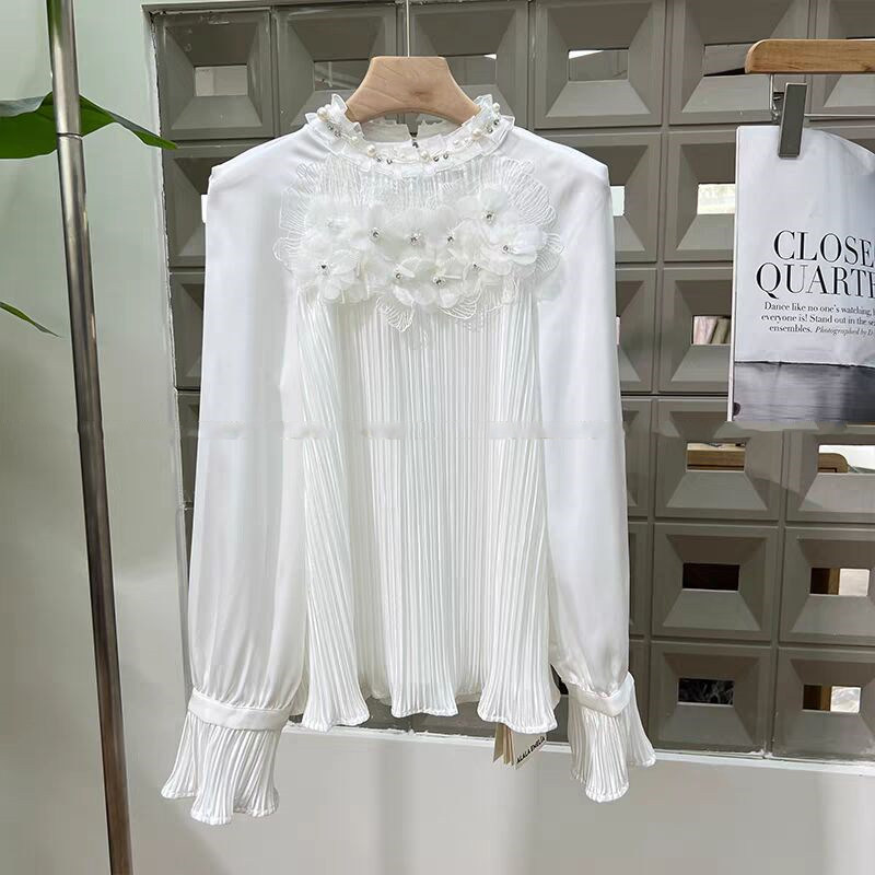 洋气压褶珠花重工套头衬衫 富家名媛别致氛围显瘦钻饰长袖 2026春季