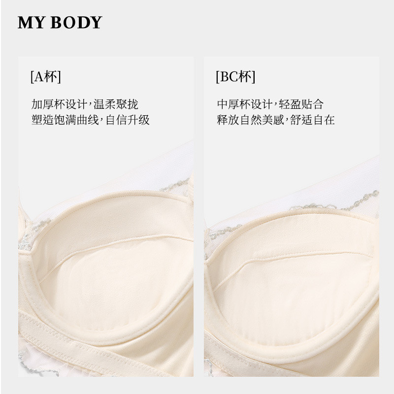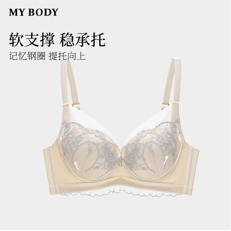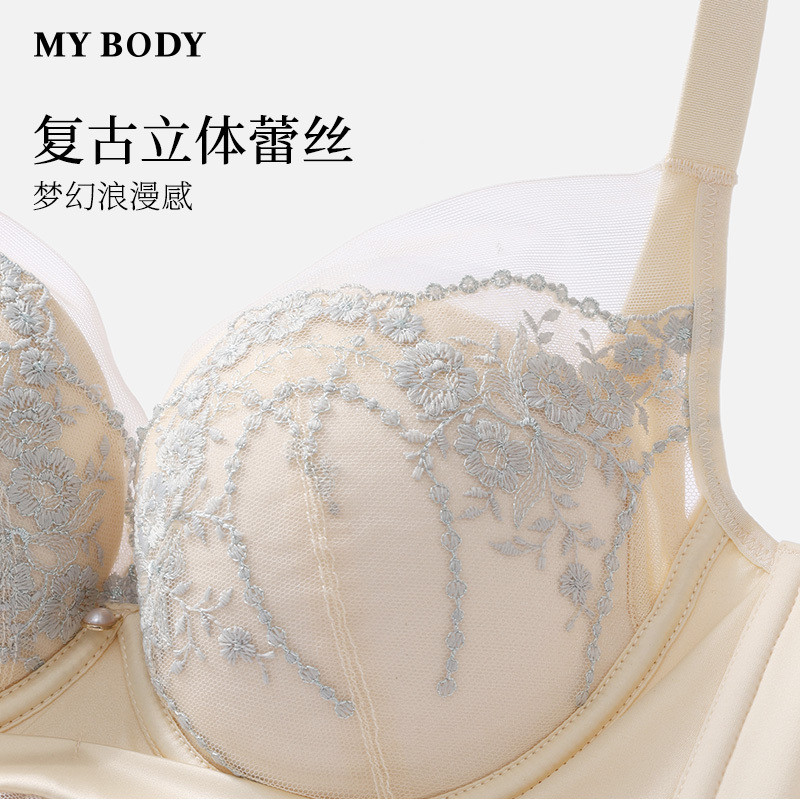 商场同款 MYBODY内衣女复古立体刺绣蕾丝记忆钢圈聚拢显大加厚文胸