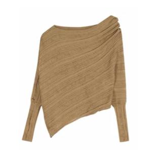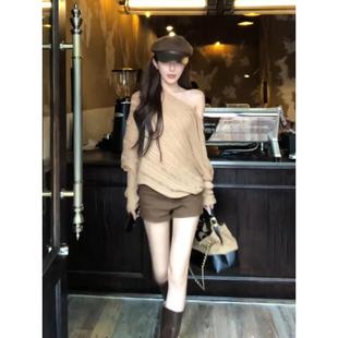 韩系氛围感穿搭露肩毛衣上衣 女2025早秋新款 法式 不规则斜肩针织衫