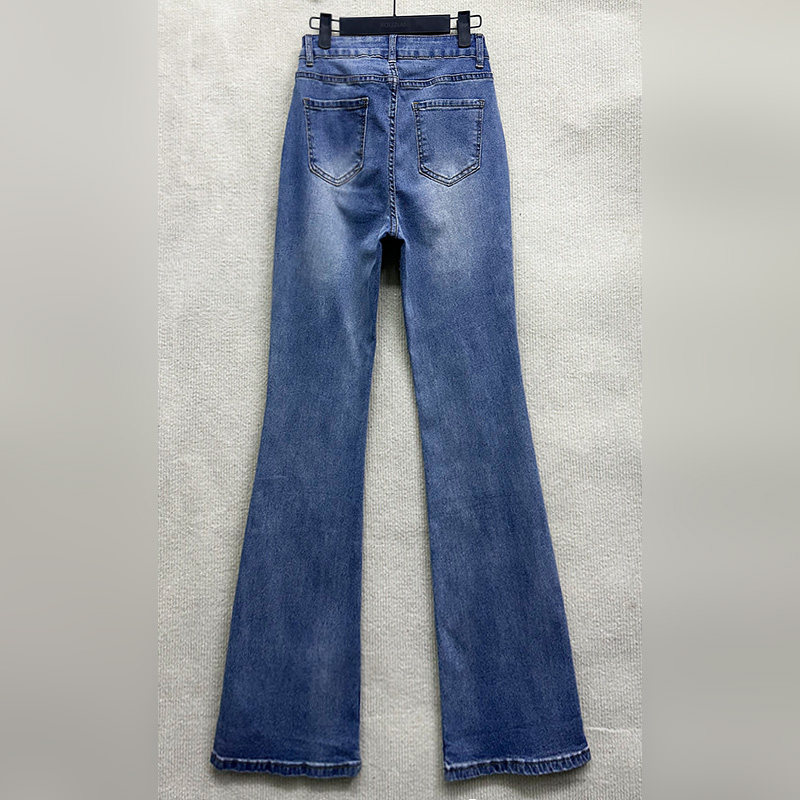 磨白百搭高腰微喇叭牛仔裤 外贸原单170 时尚 新款 175高个子女装