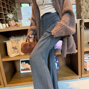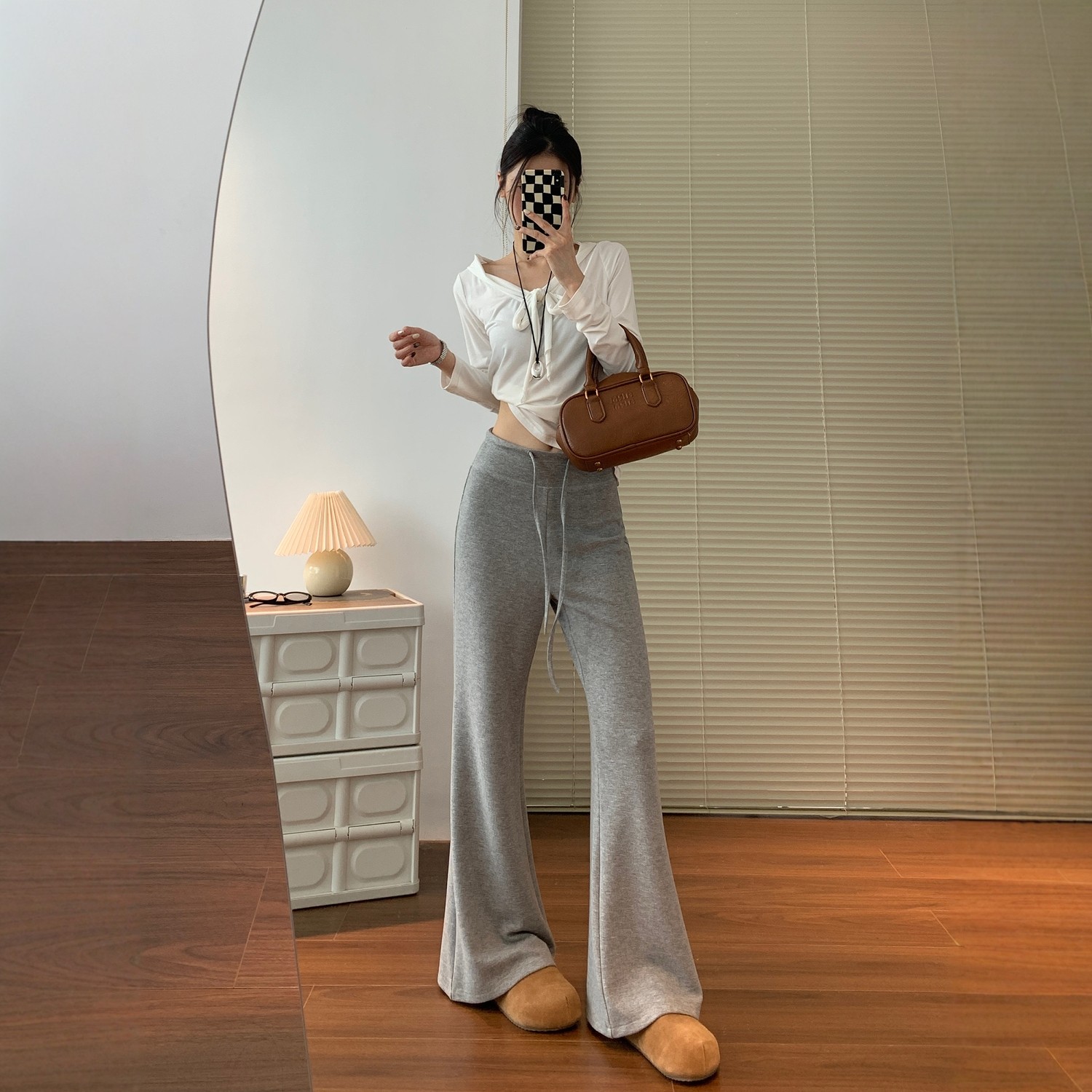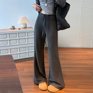 垂感羊毛微喇糯米裤 黑灰色喇叭裤 运动卫裤 高腰显瘦修身 女秋冬新款
