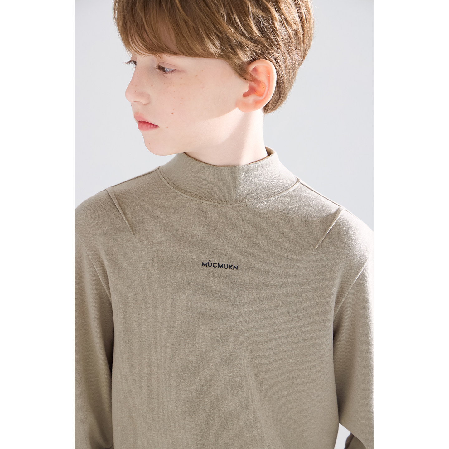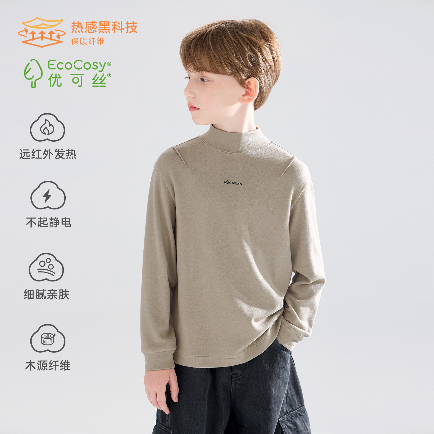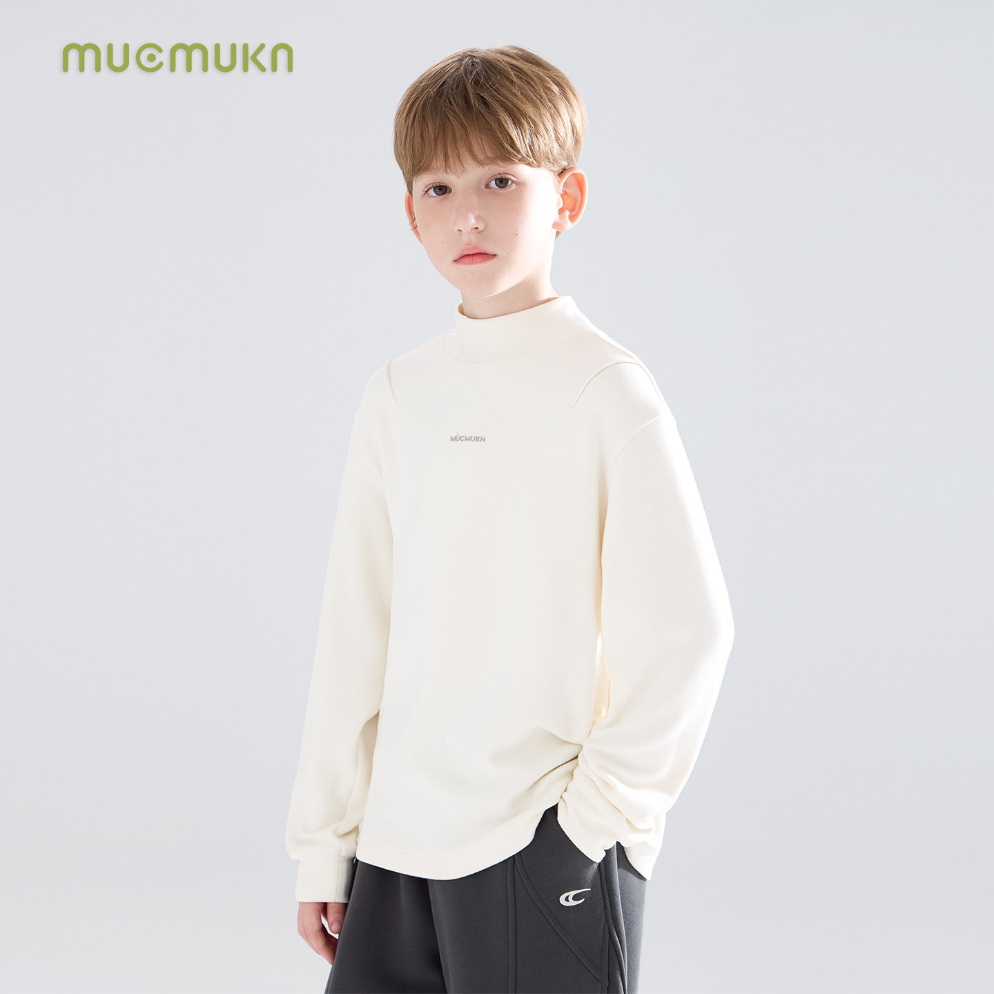 加厚暖绒抗静电男童冬新款 潮牌百搭印花打底衫 暖糯米 MUCMUKN