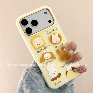 可爱卡通吐司面包米菲兔适用苹果17Promax手机壳iphone16pro新款 15pro小众14少女13硅胶15创意17pro网红全包