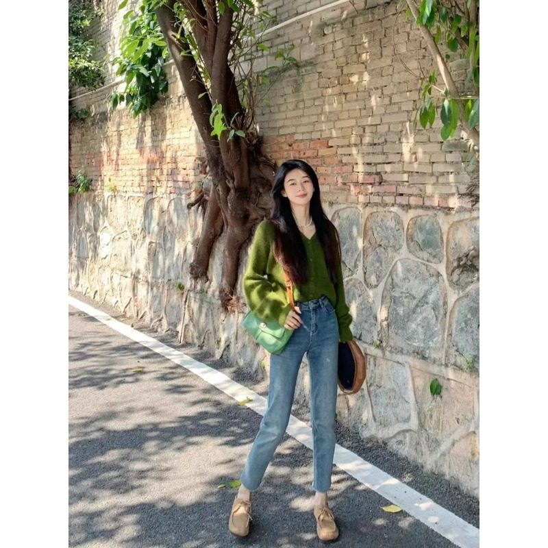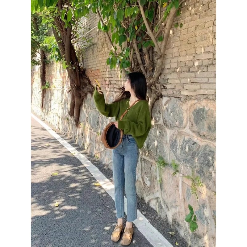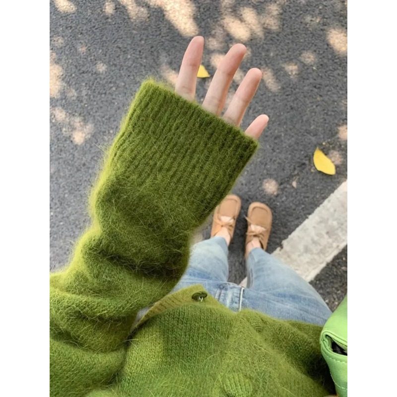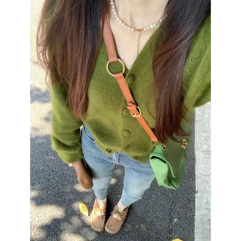 外穿温柔慵懒针织开衫 牛油果绿色毛衣外套女早秋2025新款 v领短款