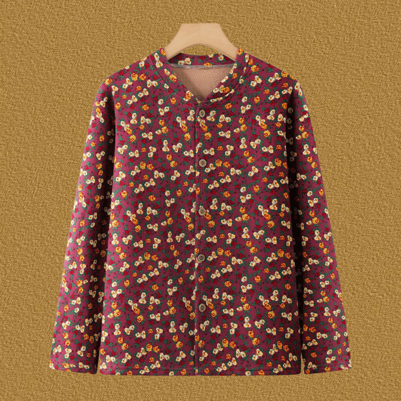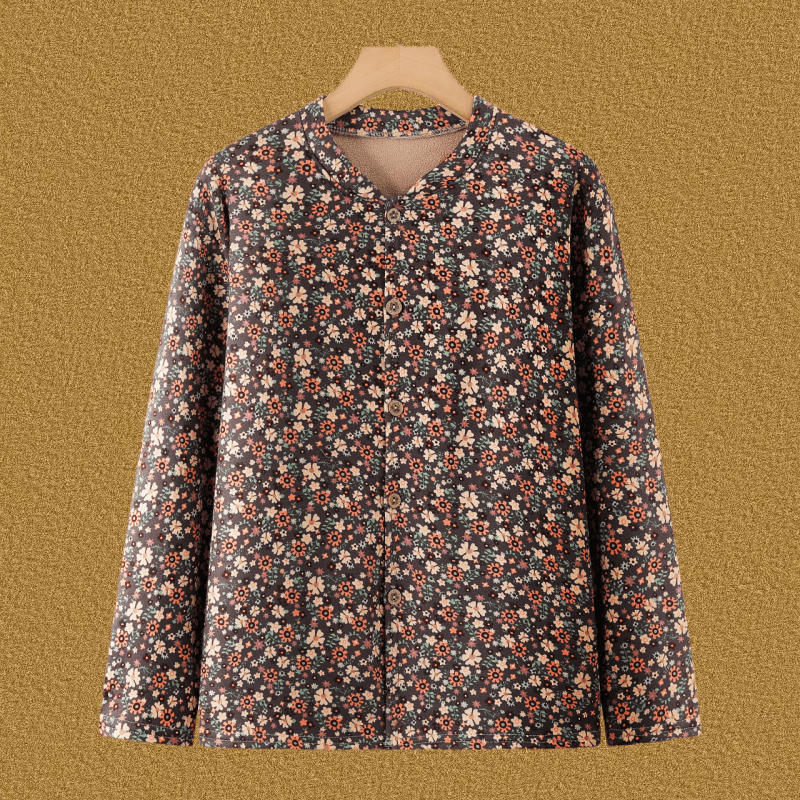 上衣 秋冬轻薄加绒衬衣妈妈装 中老年女秋冬碎花外套2025新款 奶奶装