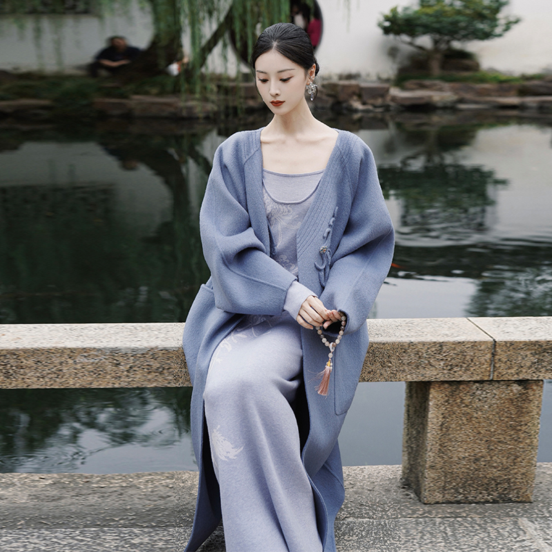 领双排扣呢子风衣外套加厚ins潮流 过膝西装 冬季 毛呢大衣男中长款