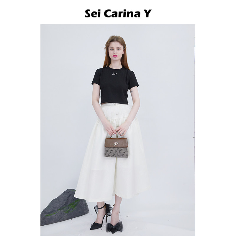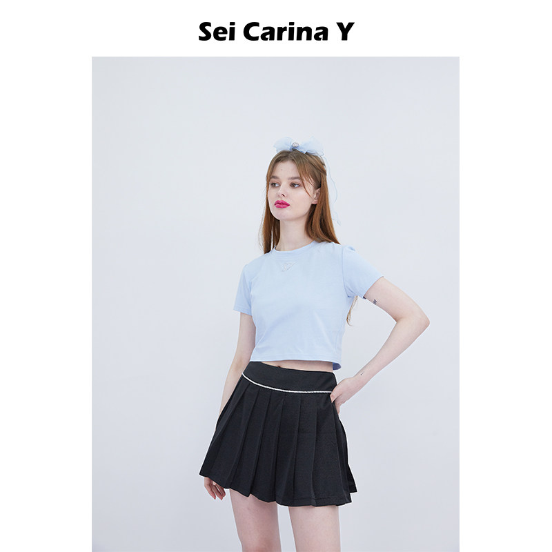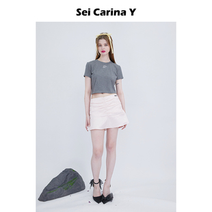 logo修身 弹力纯色短袖 T恤女新款 Sei 上衣小众短款 夏季 Carina