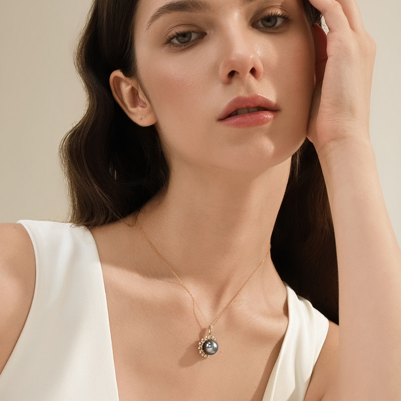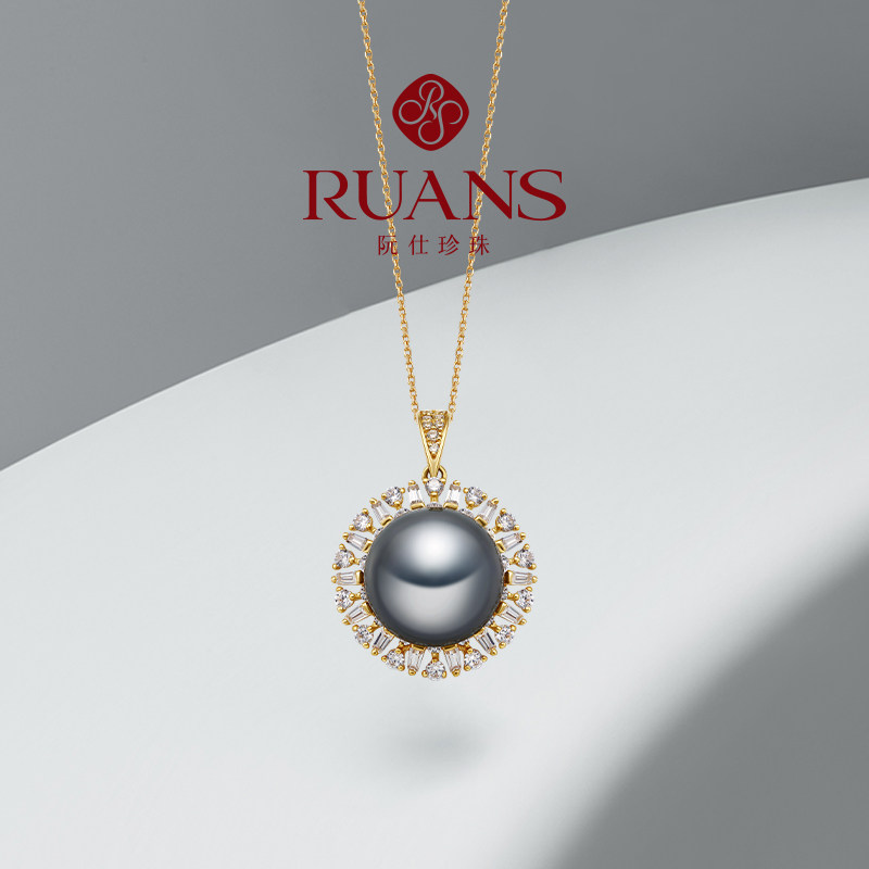 RUANS 阮仕锦绣14K金大溪地黑珍珠吊坠单颗海水珍珠颈链女项链