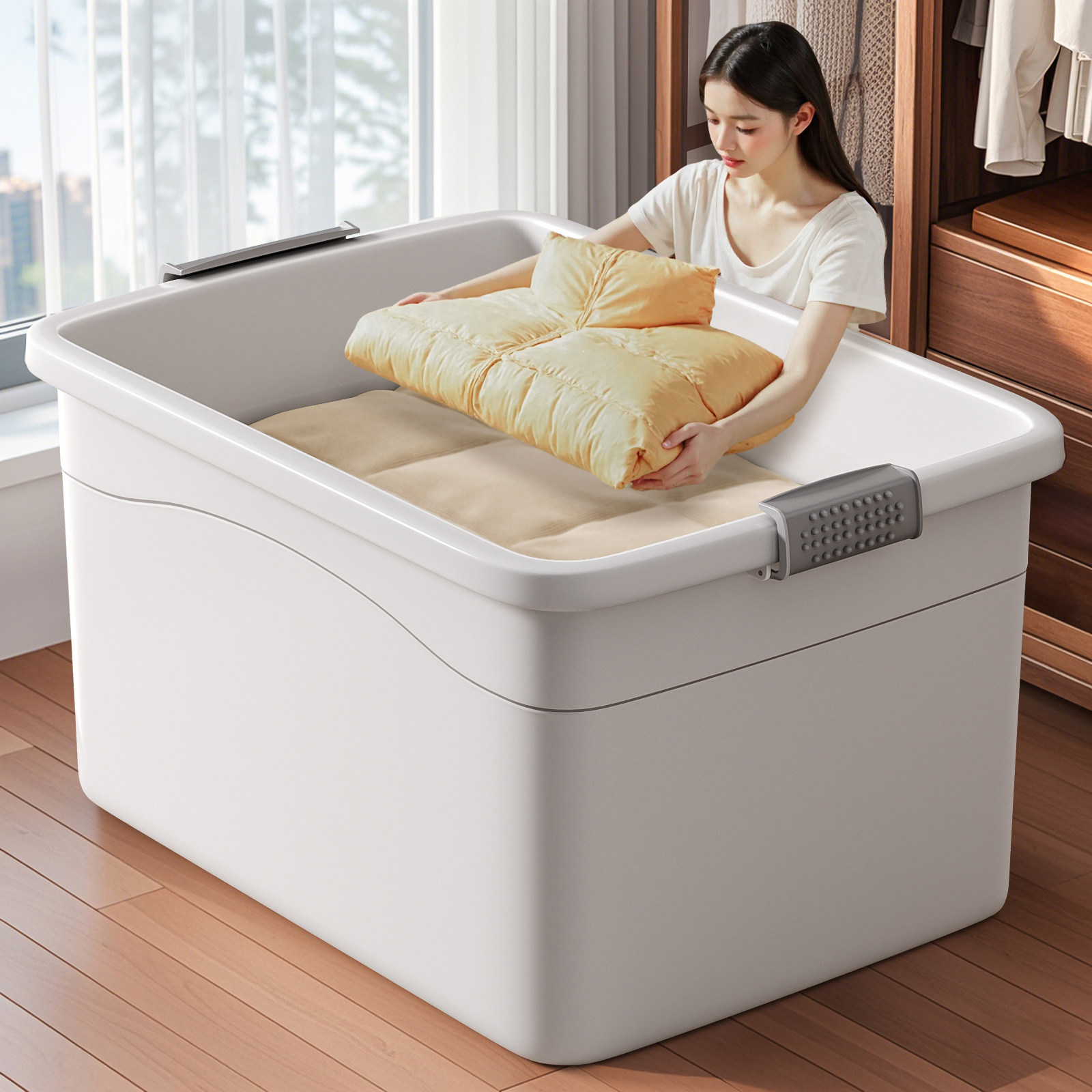 佳帮手衣服收纳箱大容量整理箱加厚带滑轮塑料衣物储物箱卧室家用