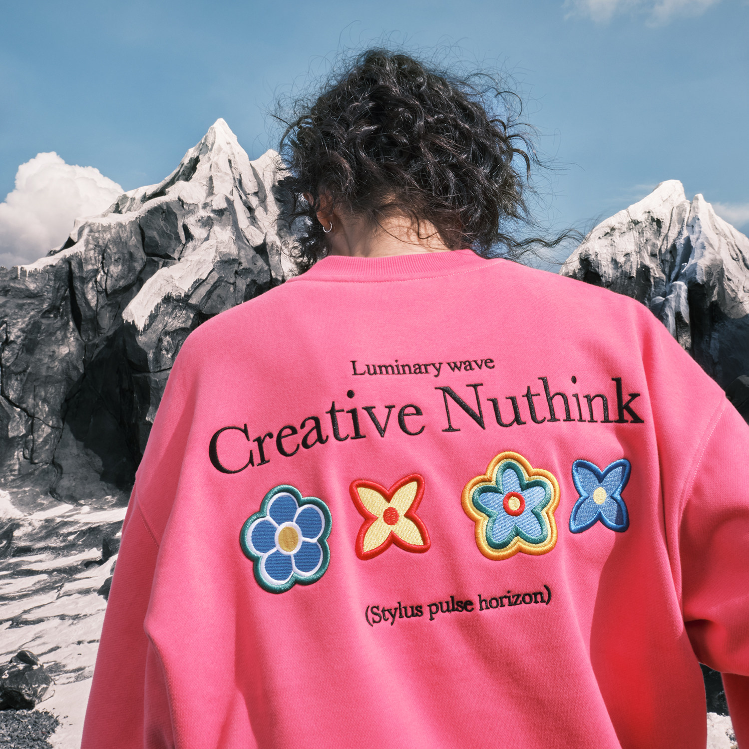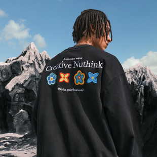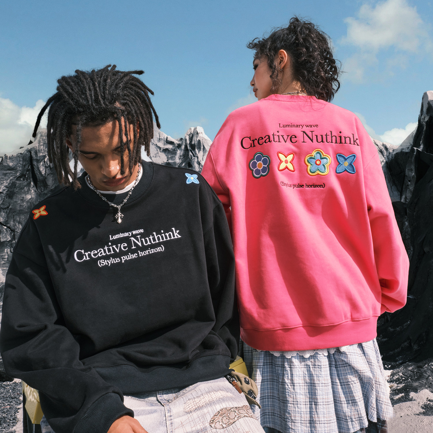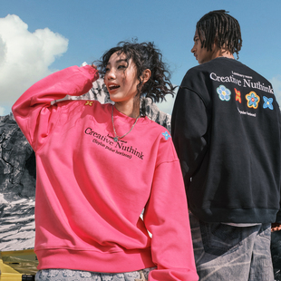 Nuthink美式 复古重磅刺绣花卉圆领卫衣字母潮牌男女2025秋冬新款