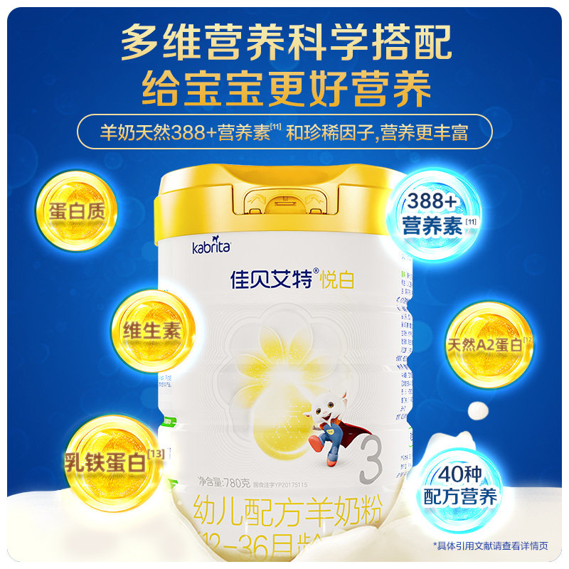 佳贝艾特悦白3段1 3岁780g婴幼儿羊奶粉荷兰进口7罐专利OPO好吸收