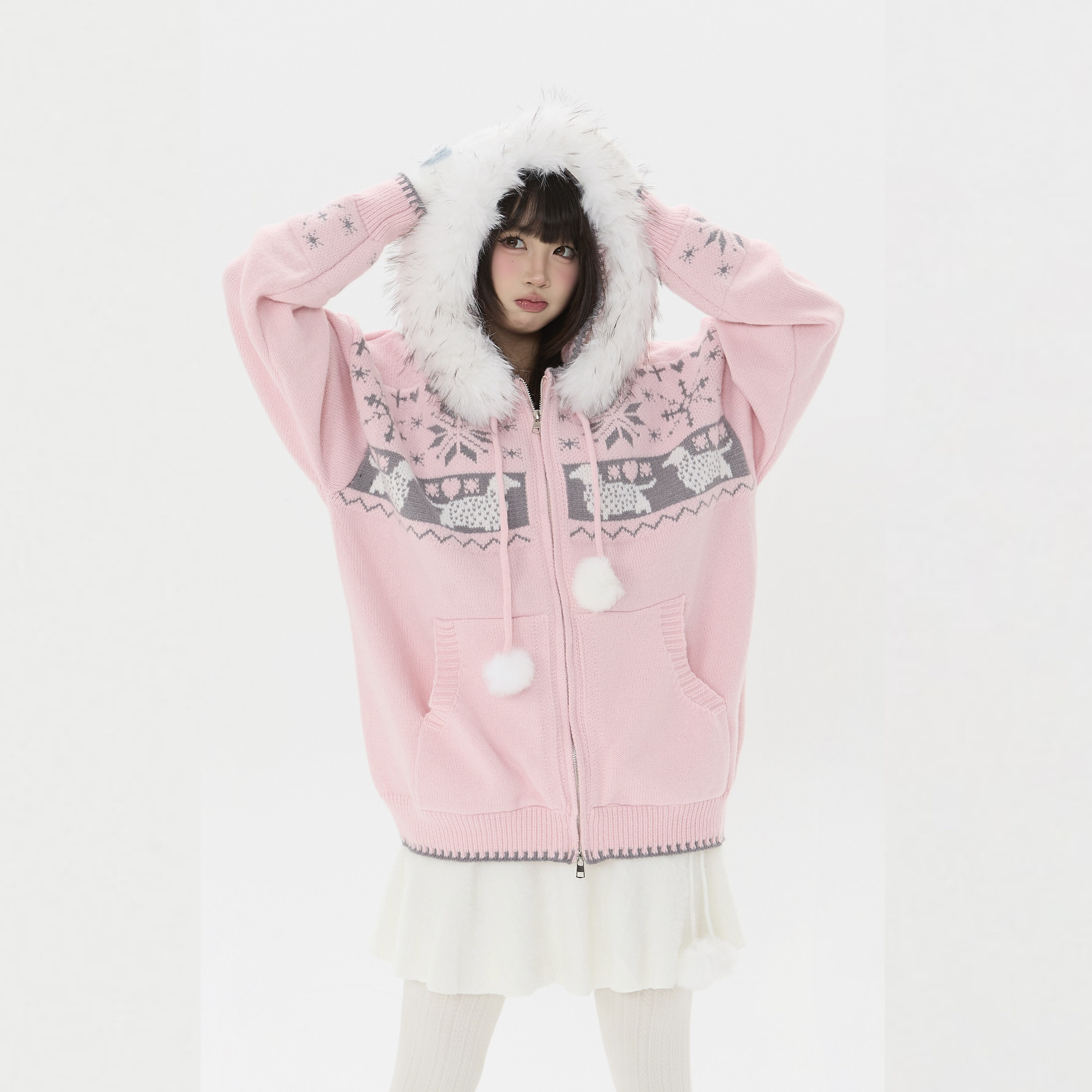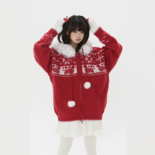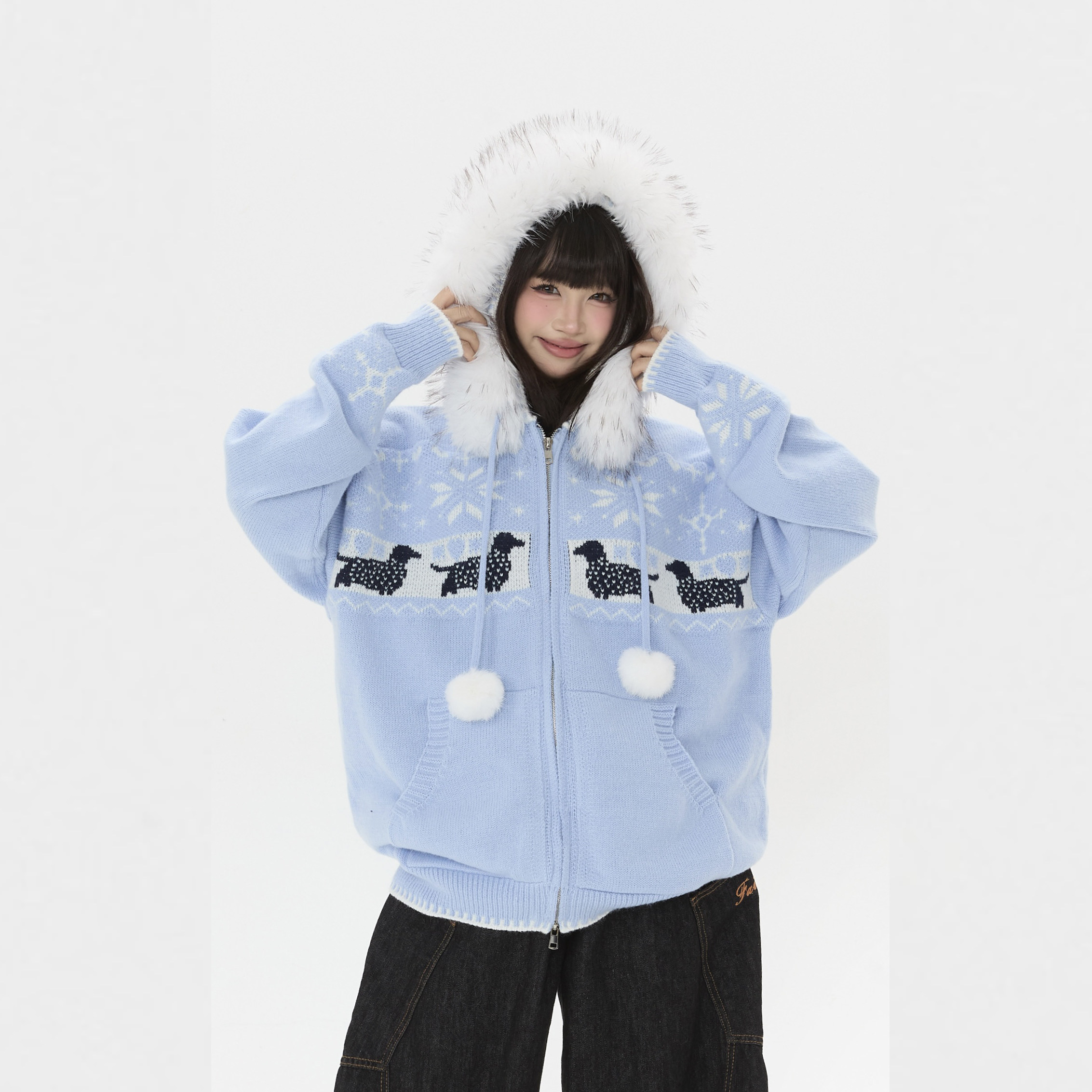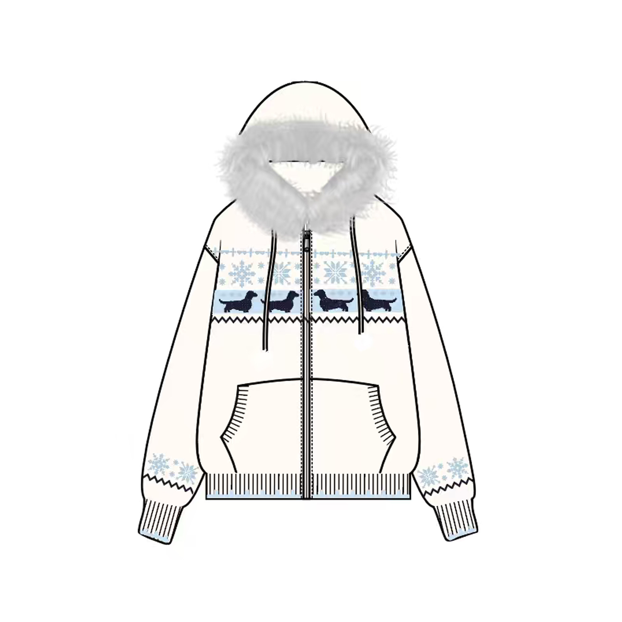国潮费尔岛小狗提花毛领毛衣秋冬小众针织衫 美式 上衣 零碎岛屿