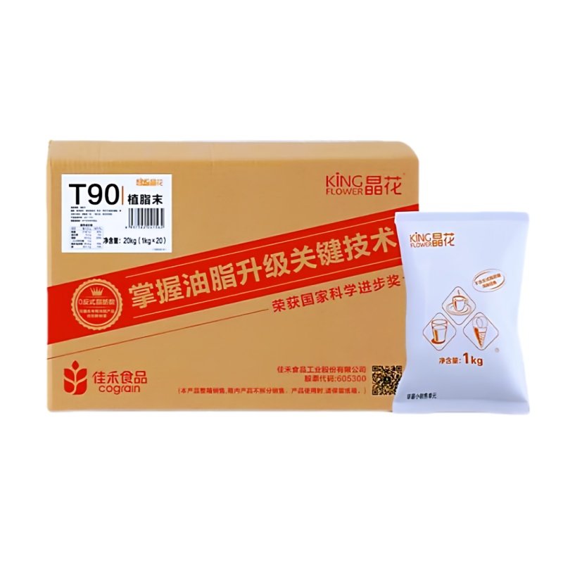 商用原料 珍珠奶茶店专用浓香奶精0反式 晶花T90植脂末1kg 20袋箱装