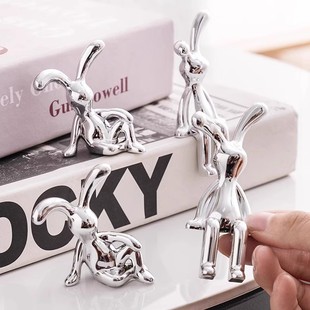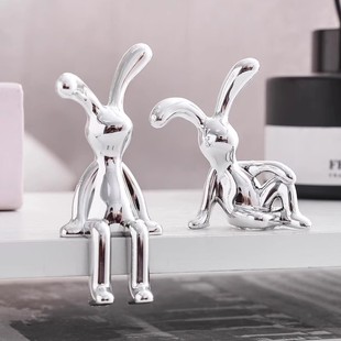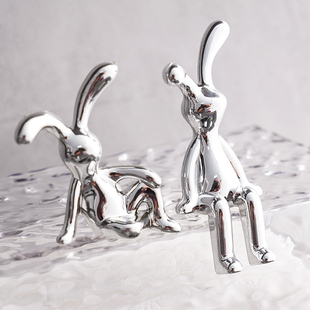 北欧现代电镀创意兔子摆件轻奢客厅汽车潮玩摆件电视柜房间装 饰物